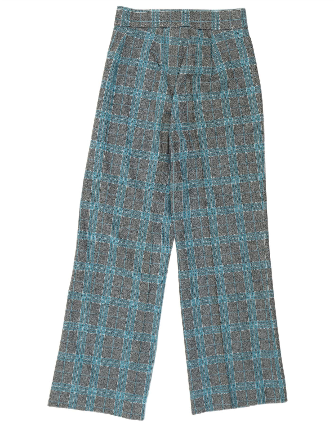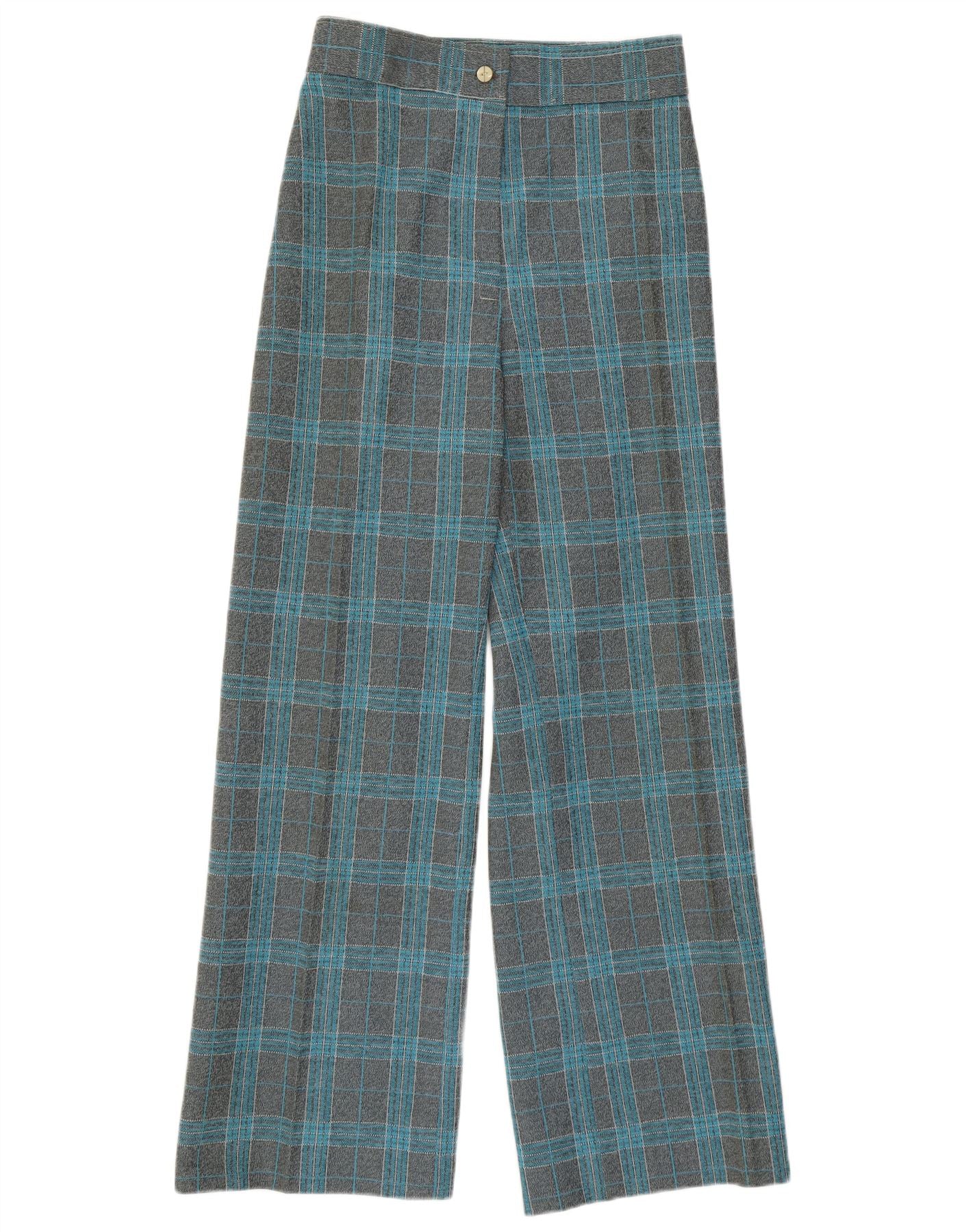 VINTAGE Damen-Freizeithose mit hoher Taille und weitem Bein, W27 L29, grau kariert