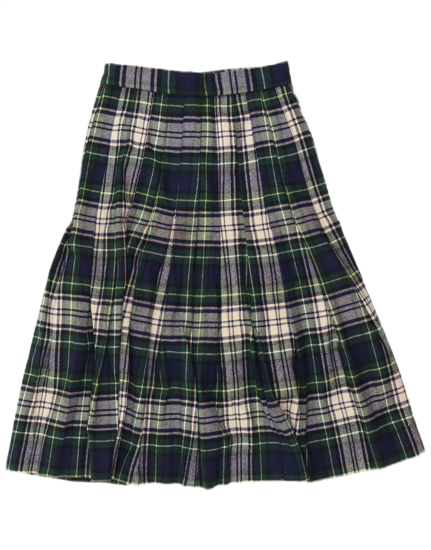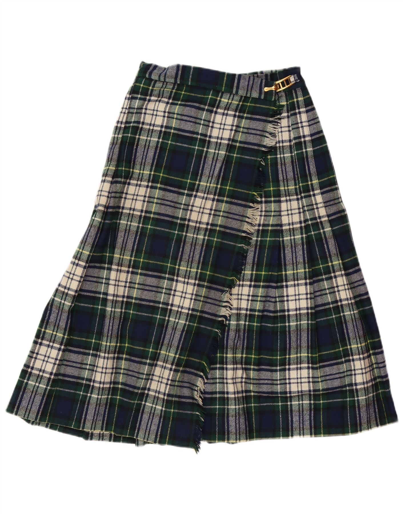 VINTAGE Damen Wickelrock mit hoher Taille IT 42 Medium W26 Grün kariert