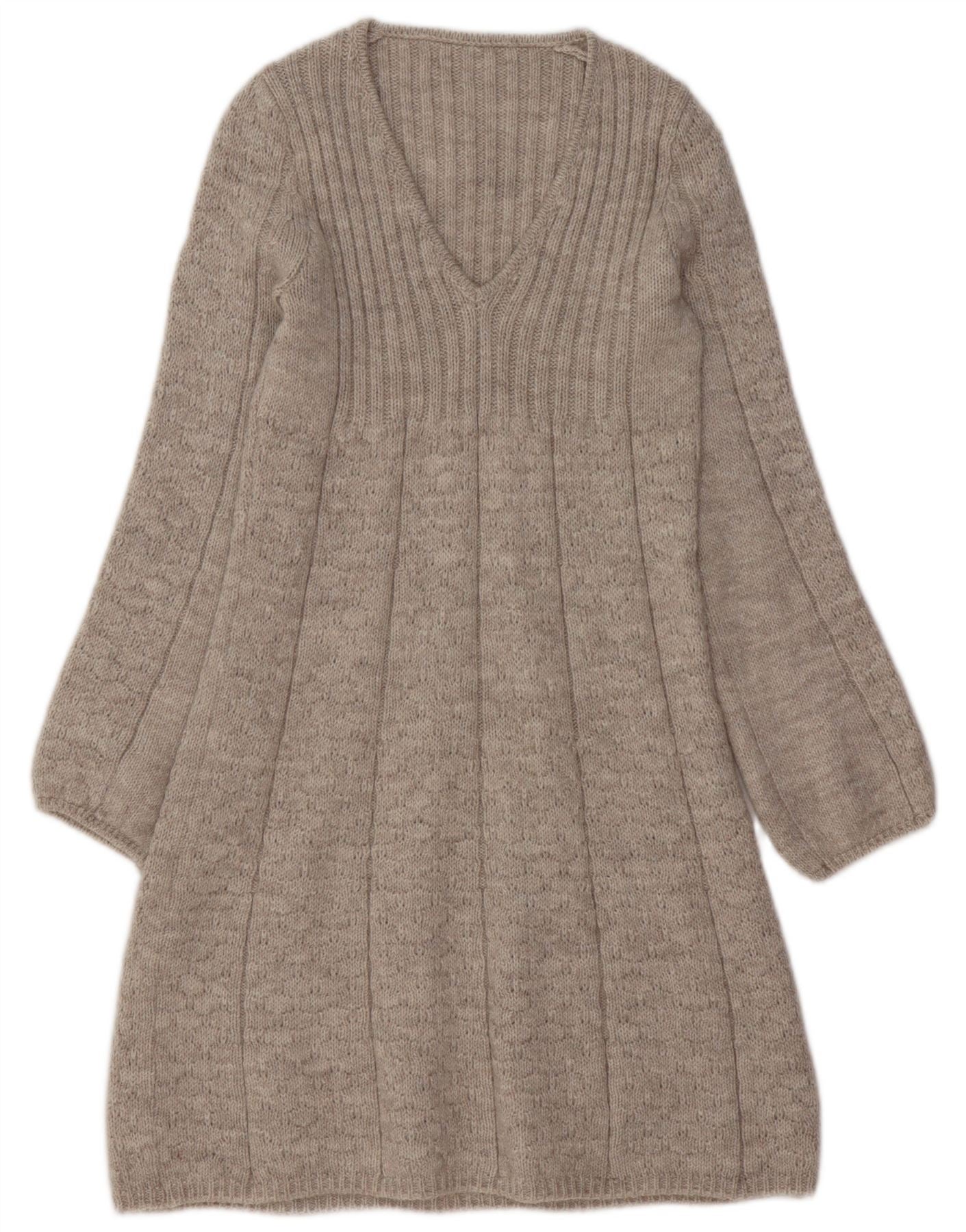 VINTAGE Damen Pulloverkleid UK 10 Small Beige Acryl