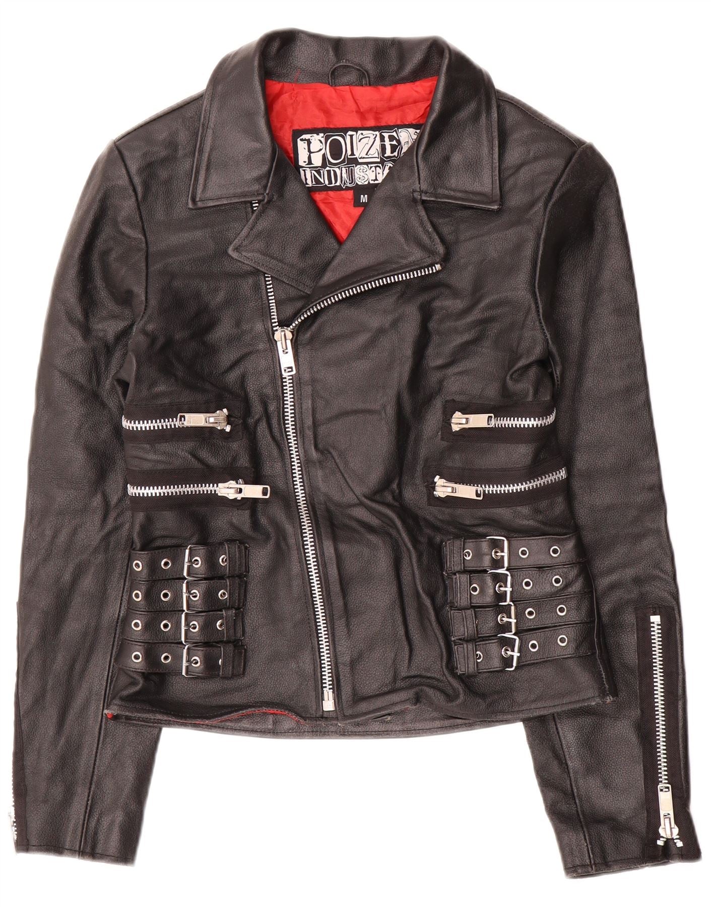 VINTAGE Damen Leder Bikerjacke UK 12 Mittelschwarzes Leder