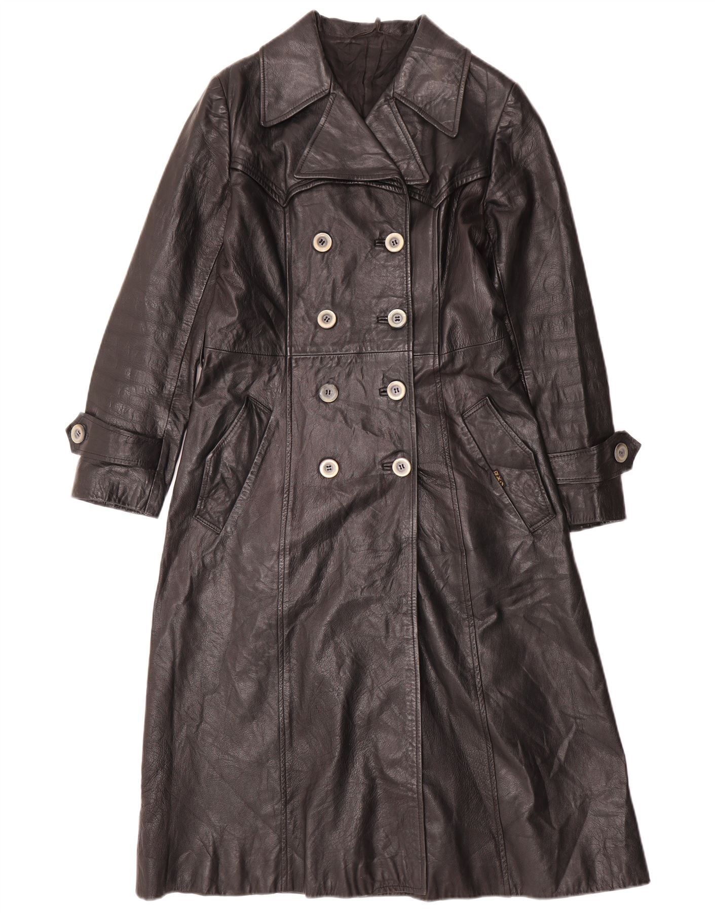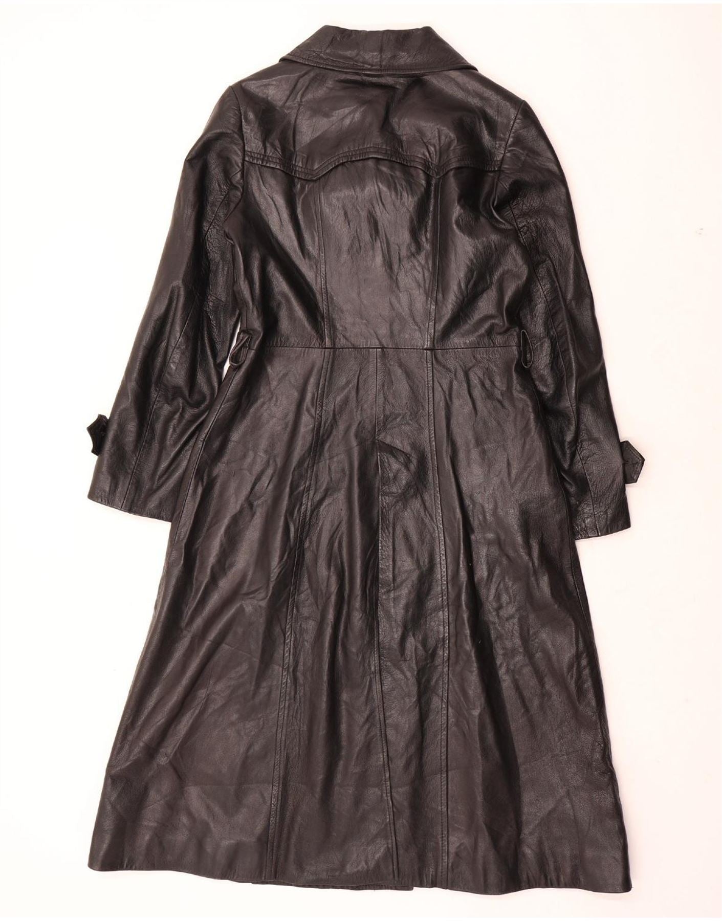 VINTAGE Damen Ledermantel UK 12 Mittelschwarzes Leder