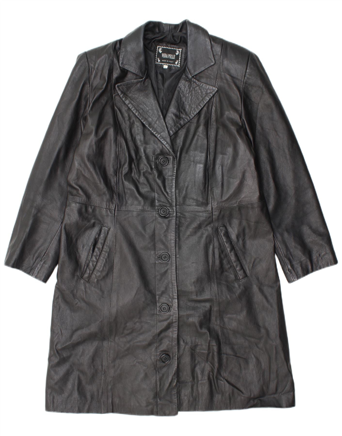 VINTAGE Damen Ledermantel UK 18 XL Schwarzes Leder