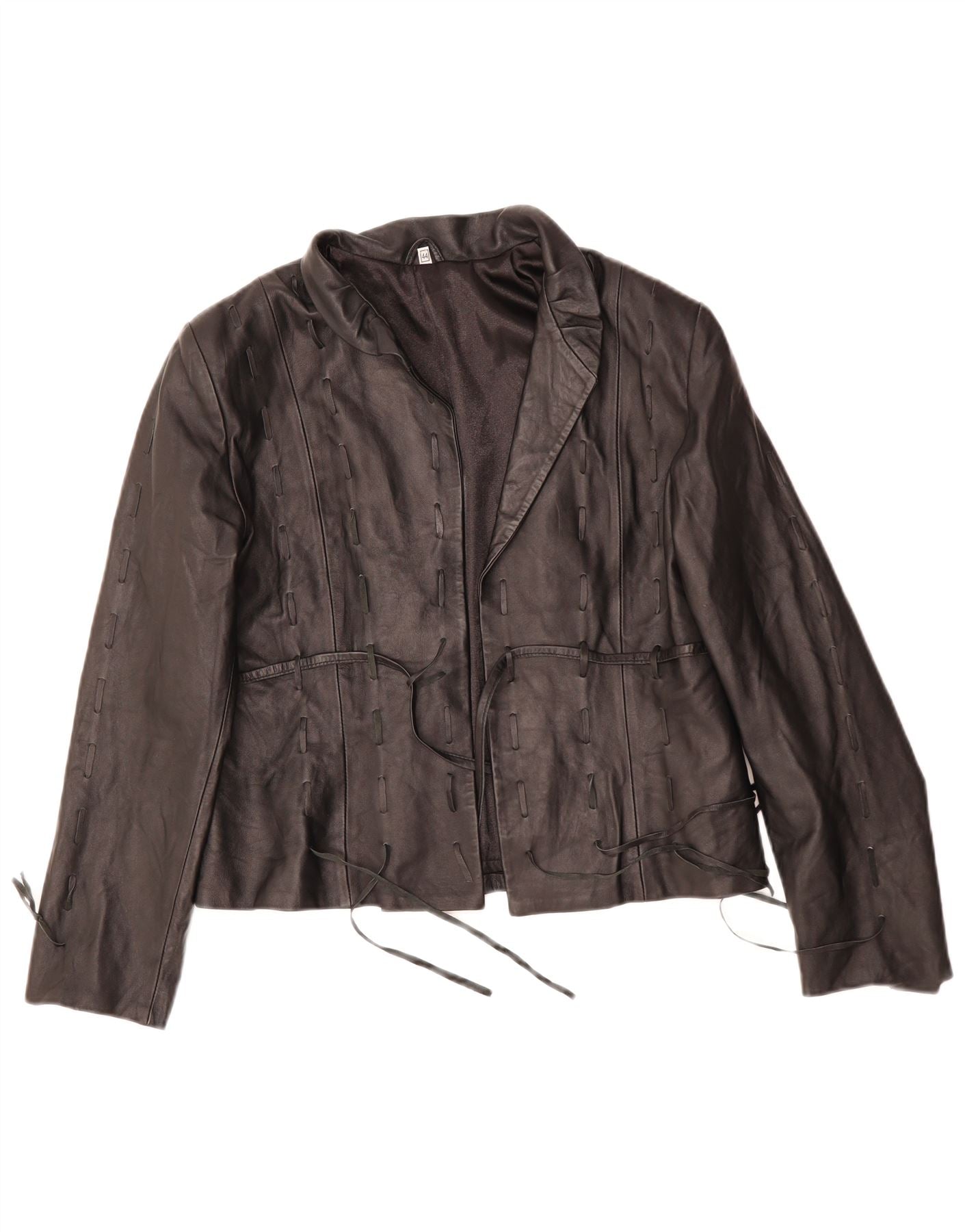 VINTAGE Damen Lederjacke IT 44 Medium Schwarz