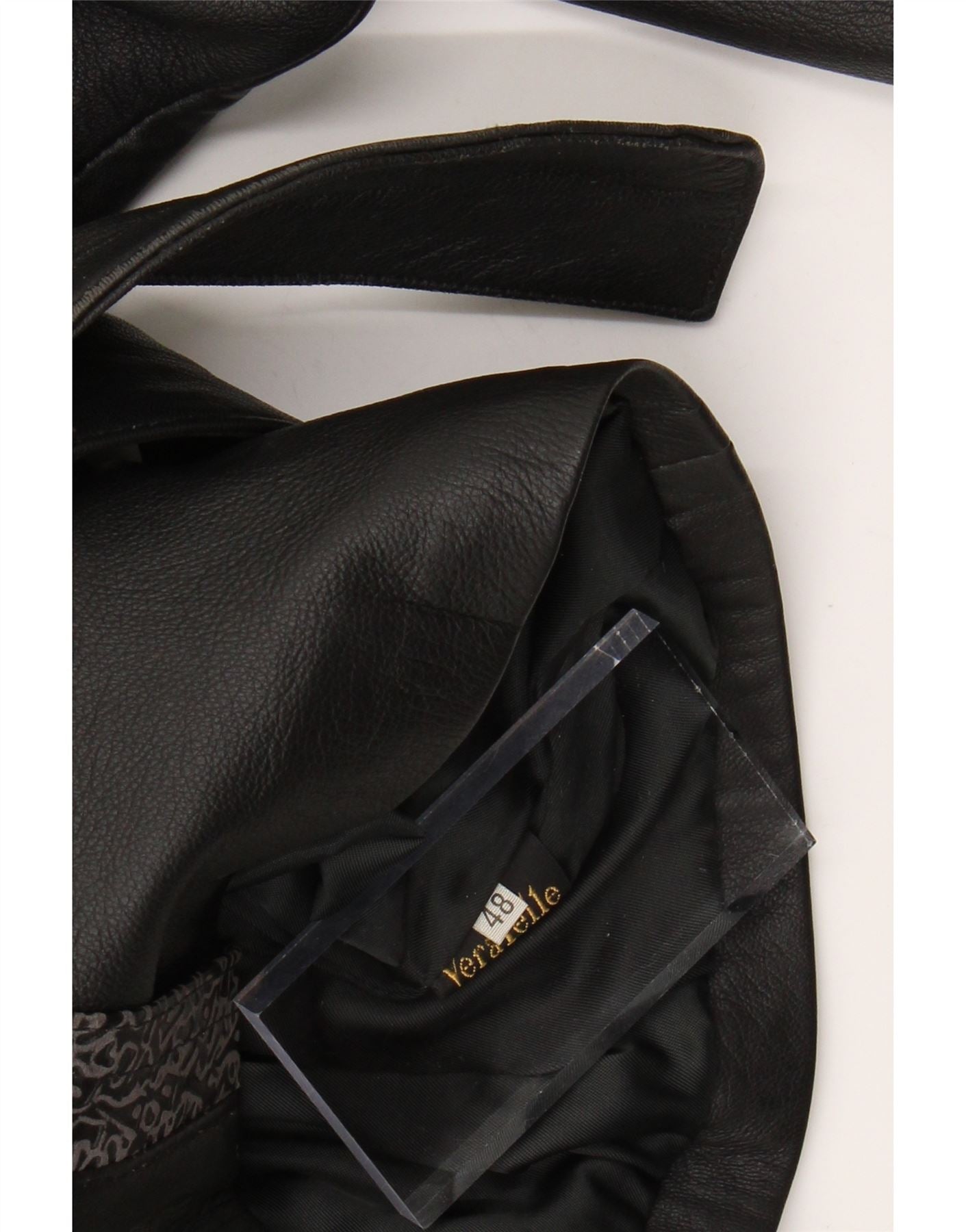 VINTAGE Damen Lederjacke IT 48 XL Schwarzes geometrisches Leder