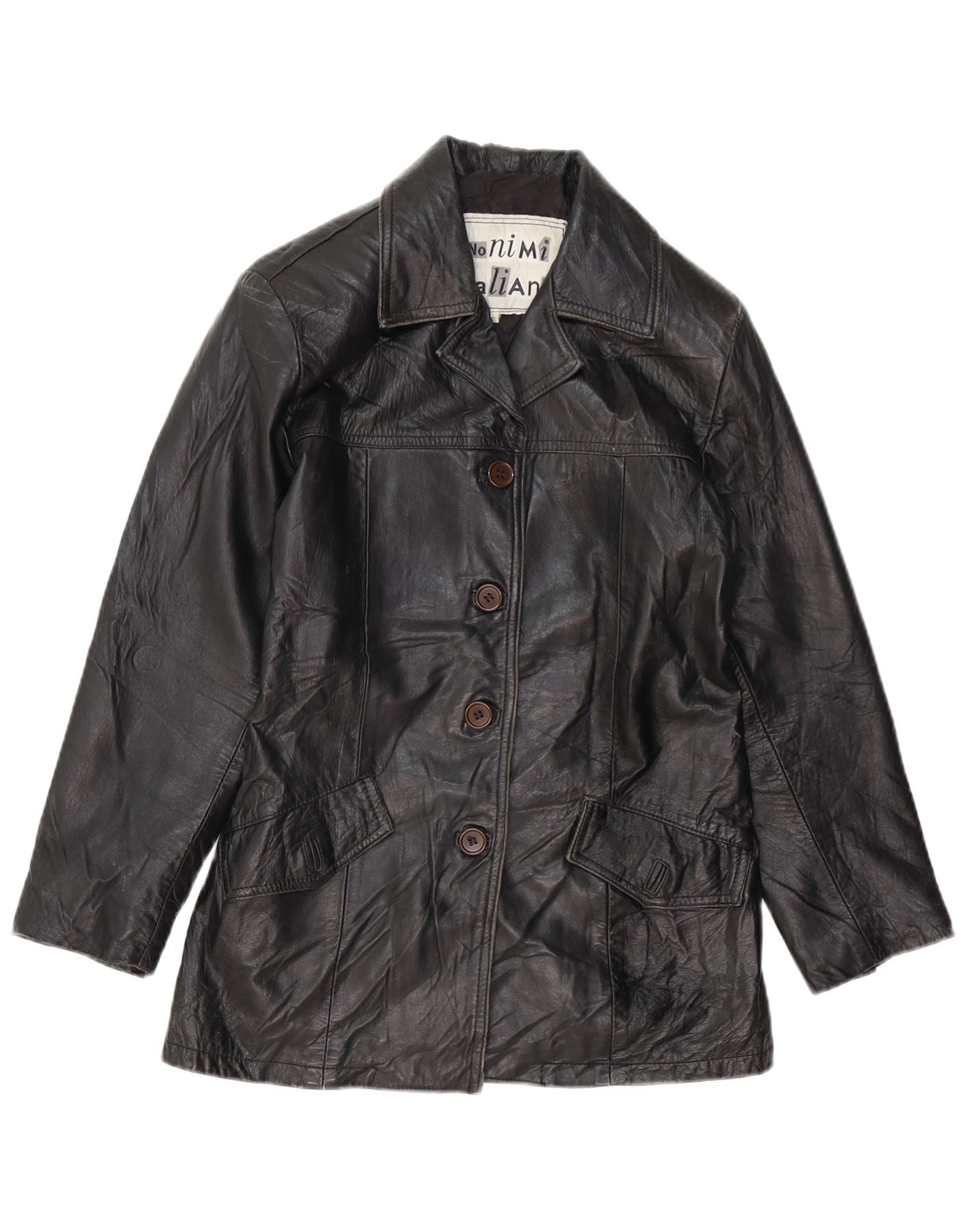 VINTAGE Damen Lederjacke UK 10 Kleines schwarzes Leder