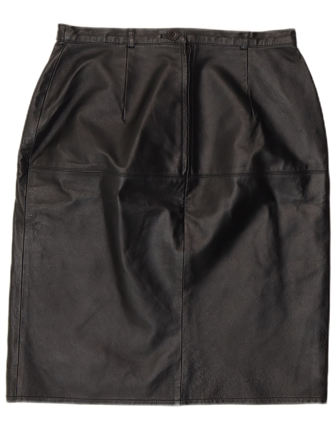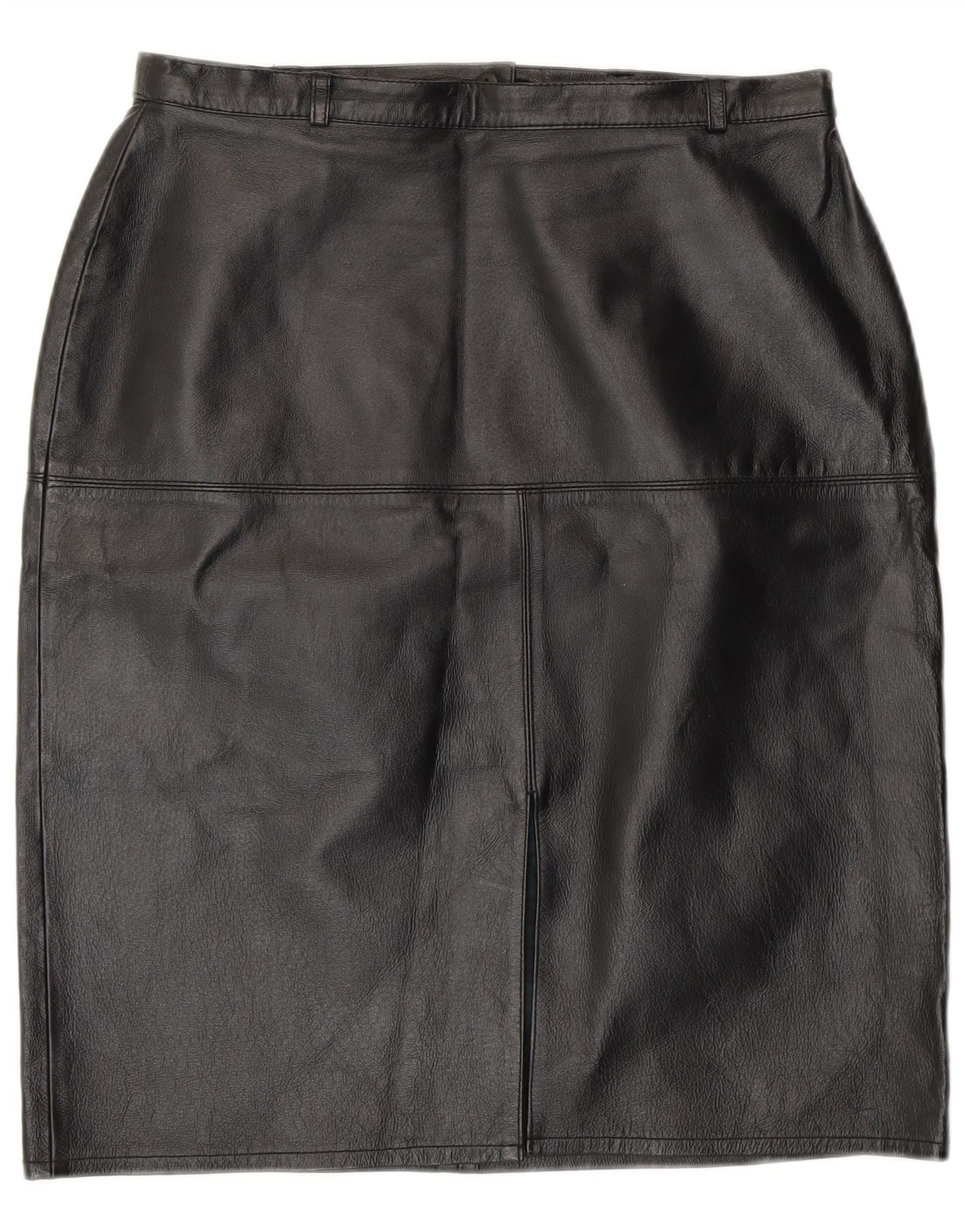 Vintage Damen Leder Bleistiftrock UK 12 Medium W28 Schwarzes Leder