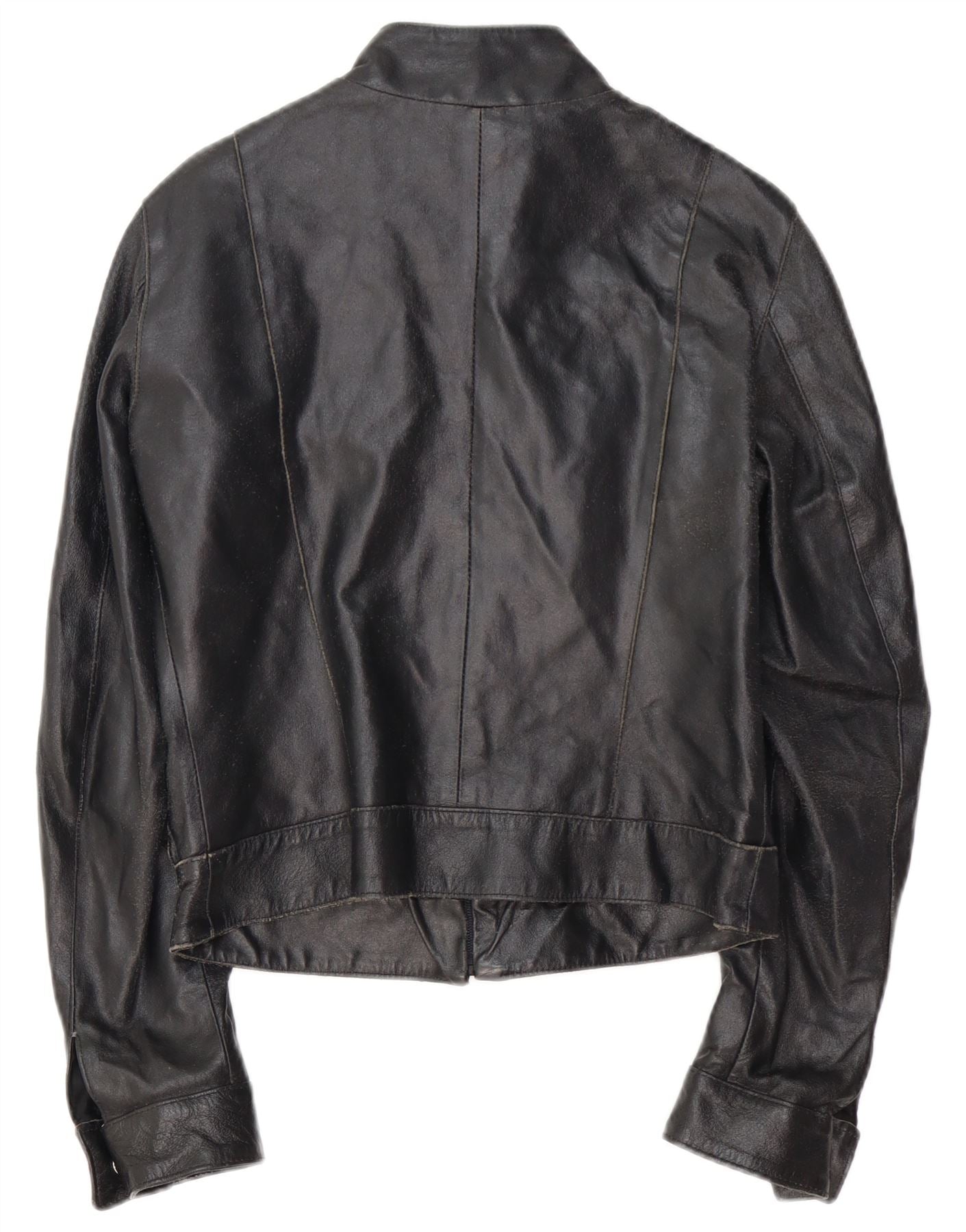 VINTAGE Damen Leder-Racer-Jacke IT 42 Mittelschwarzes Leder