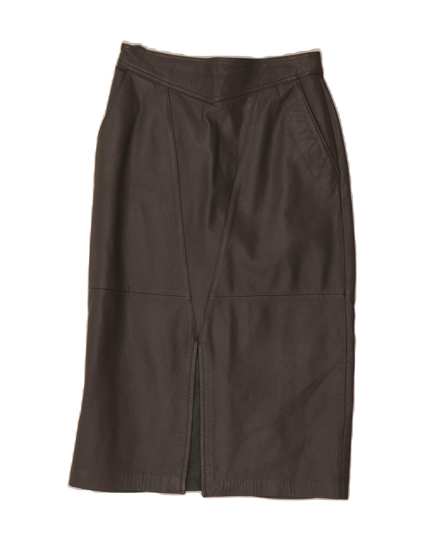 VINTAGE Womens Leather Skirt EU 38 Medium W28 Grey Leather