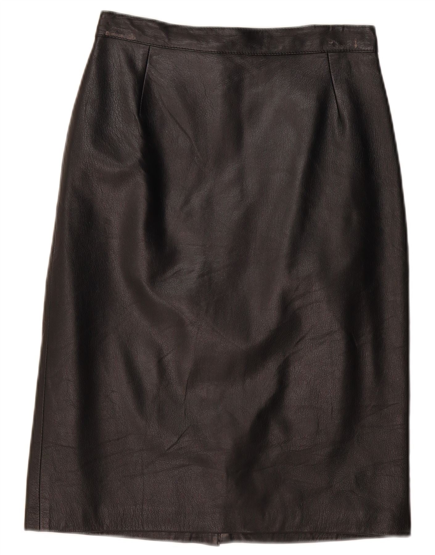 VINTAGE Damen Lederrock IT 44 Medium W28 Schwarzes Leder