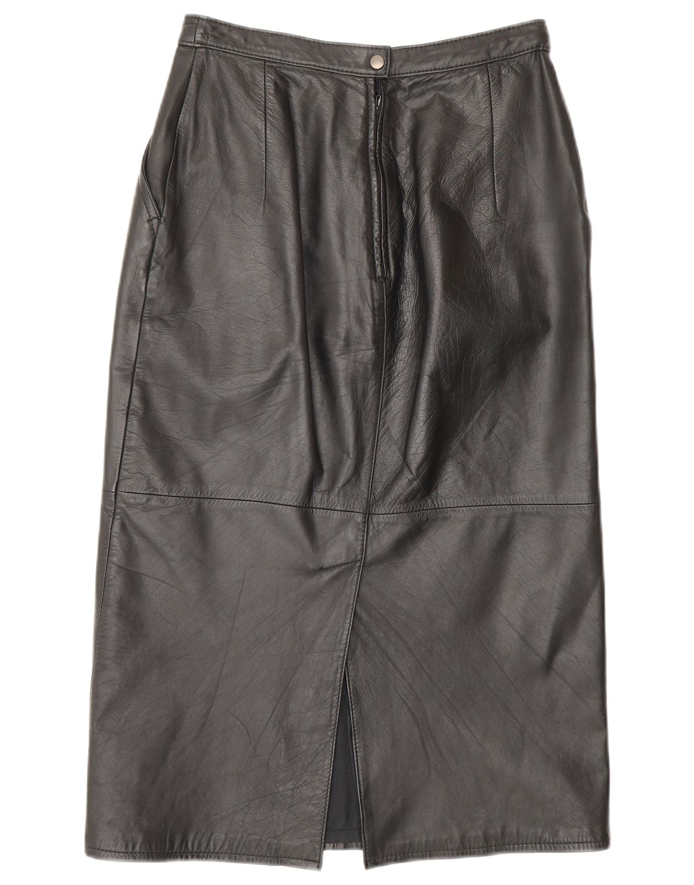VINTAGE Damen Lederrock UK 10 Small W26 Schwarzes Leder