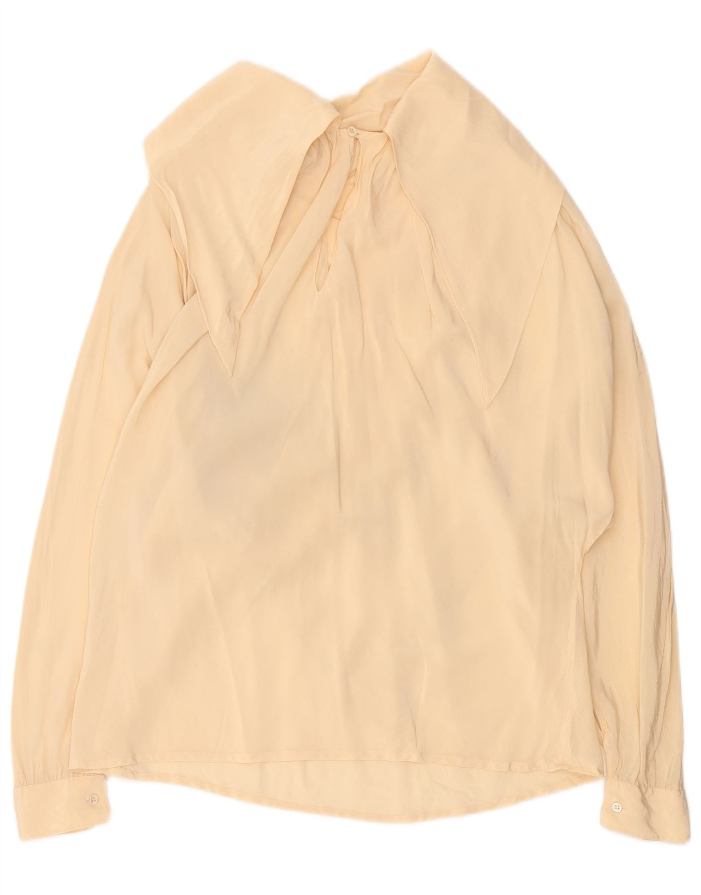 Vintage Damen LangarmBluse Top UK 14 Große beige geometrische Seide