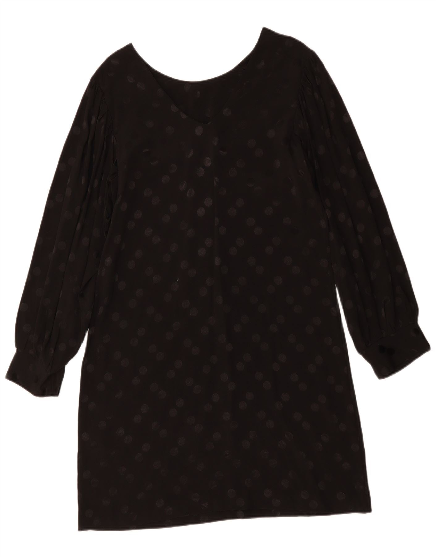 Home > Damen > Depop-Kleidung > Vintage Damen Langarm-Etuikleid UK 14 Mittelschwarz gepunktete Viskose