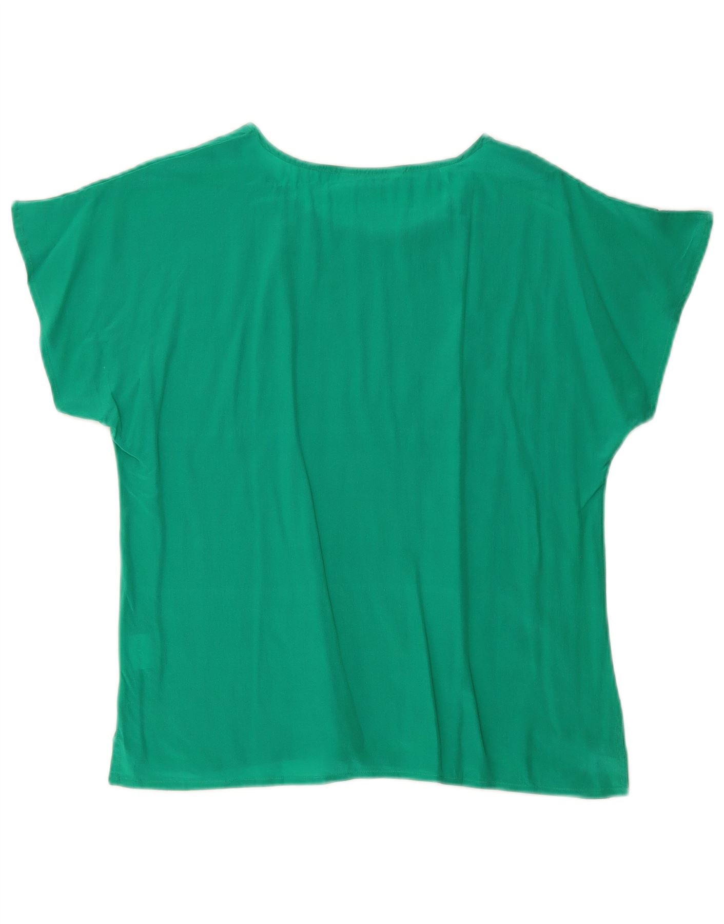 VINTAGE Damen Bluse mit lockerer Passform, UK 10, kleine grüne Seide