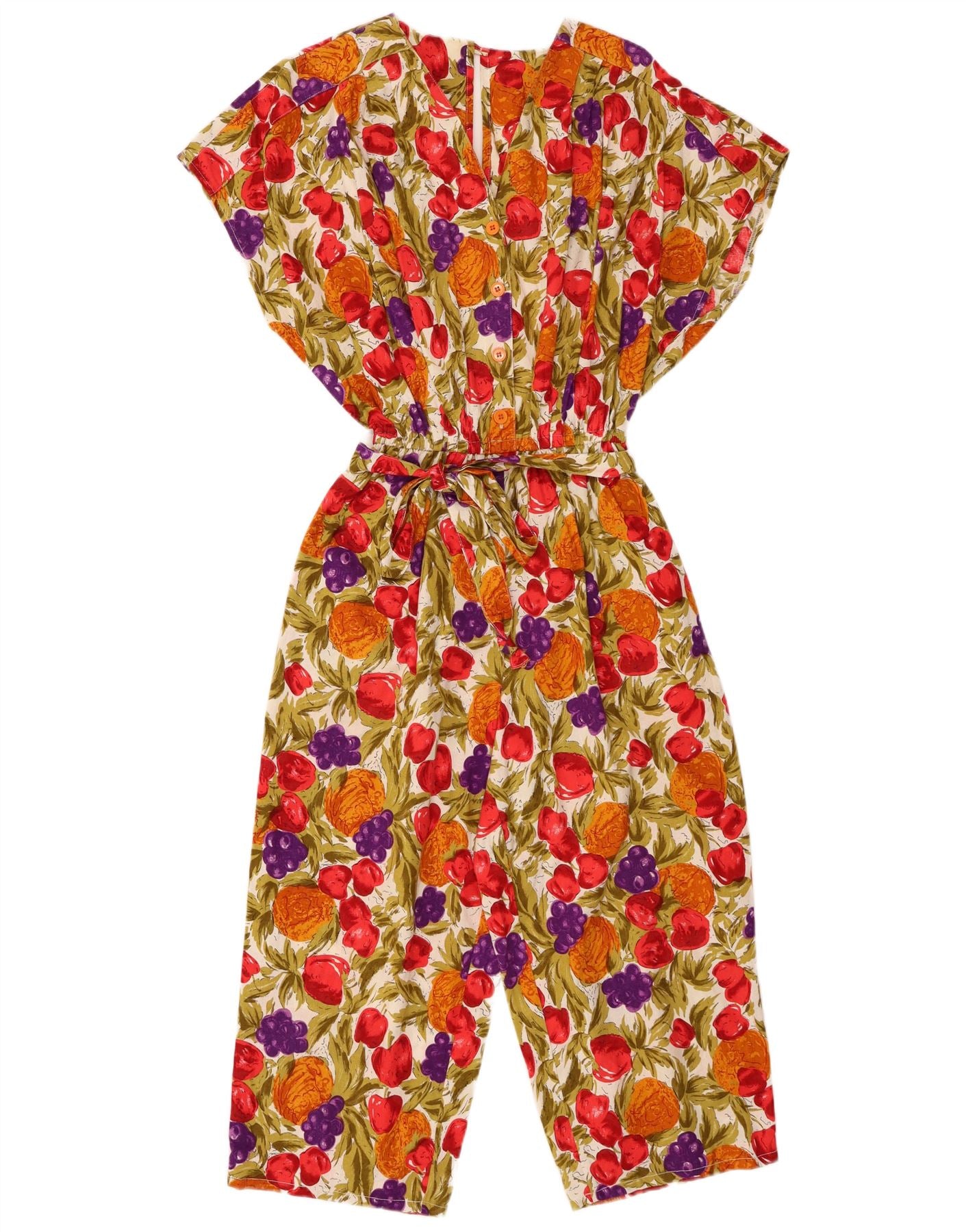 VINTAGE Womens Loose Fit Jumpsuit UK 12 Medium Multicoloured Floral
