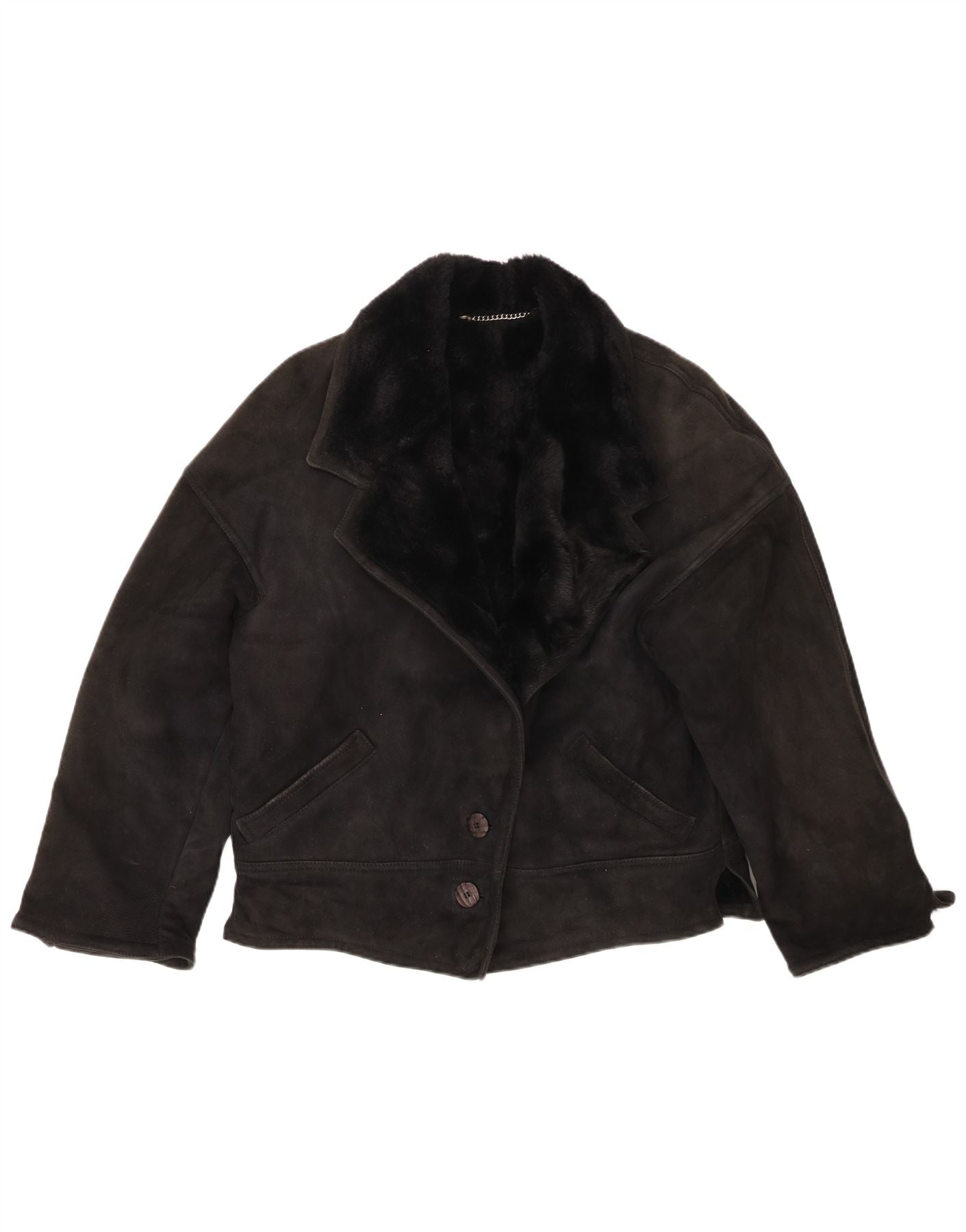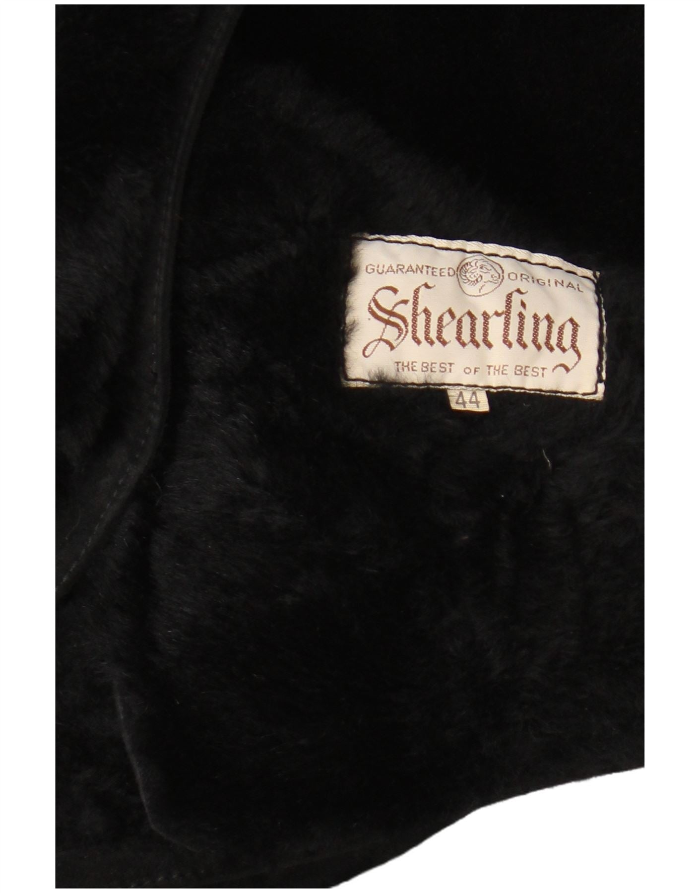 VINTAGE Damen Shearling Jacke mit lockerer Passform IT 44 Medium Black Shearling