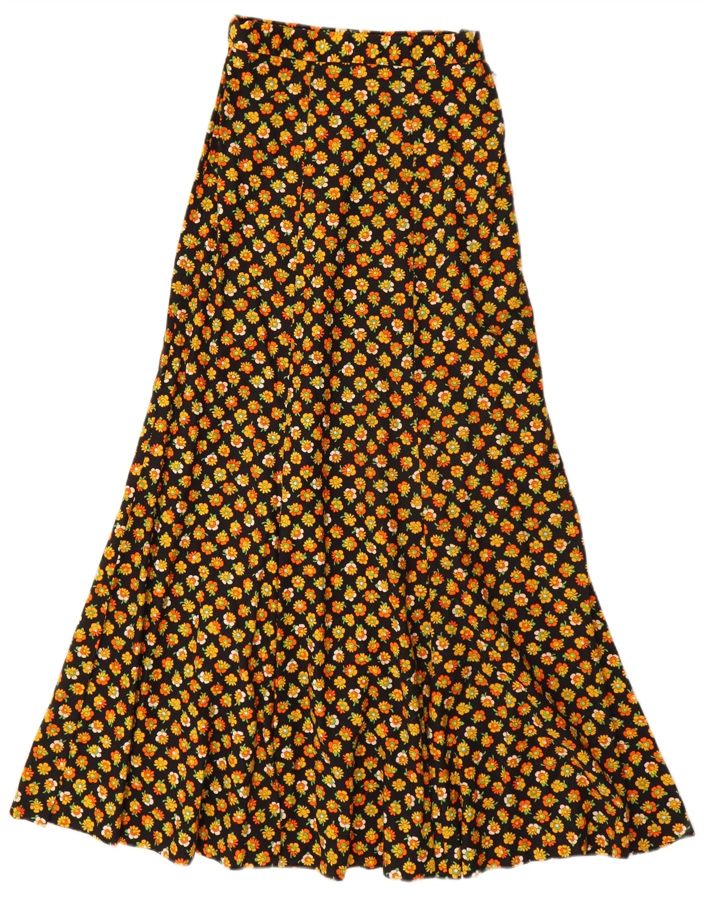 VINTAGE Damen Maxi-A-Linien-Rock EU 34 2XS W24 Schwarz geblümte Baumwolle