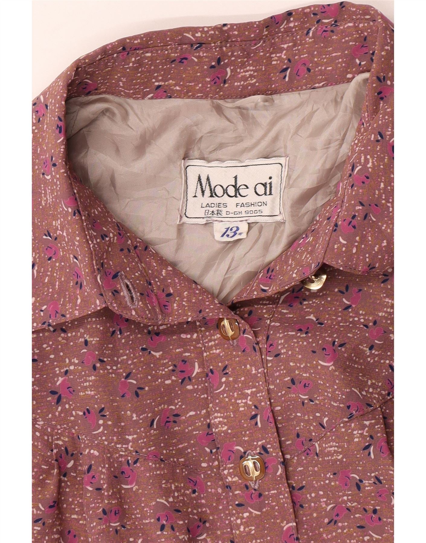 Vintage Damen Maxi Pullover Hemdkleid UK 12 Mittelbraun geblümt