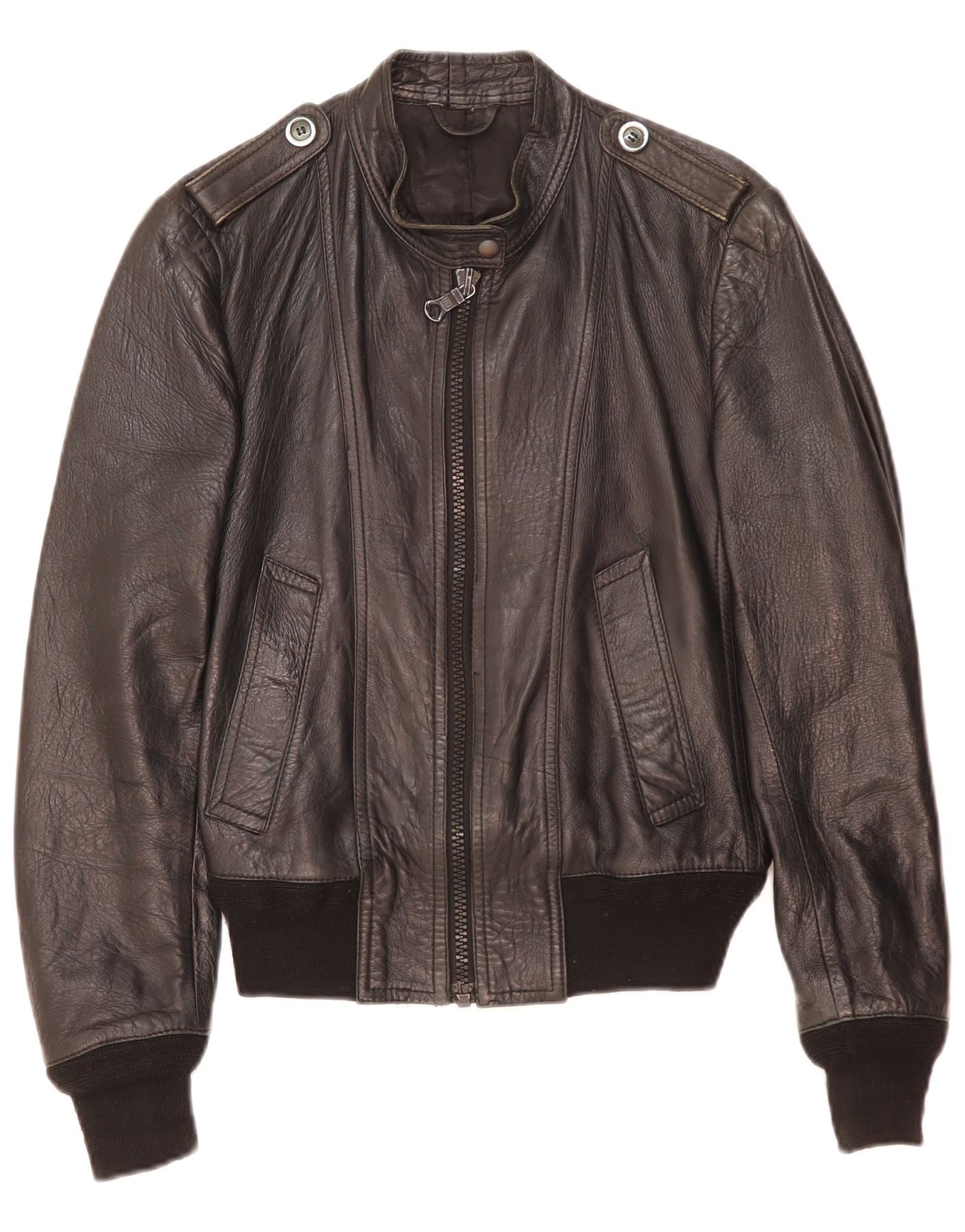 Vintage Damen Militärlederjacke UK 14 Medium Schwarz