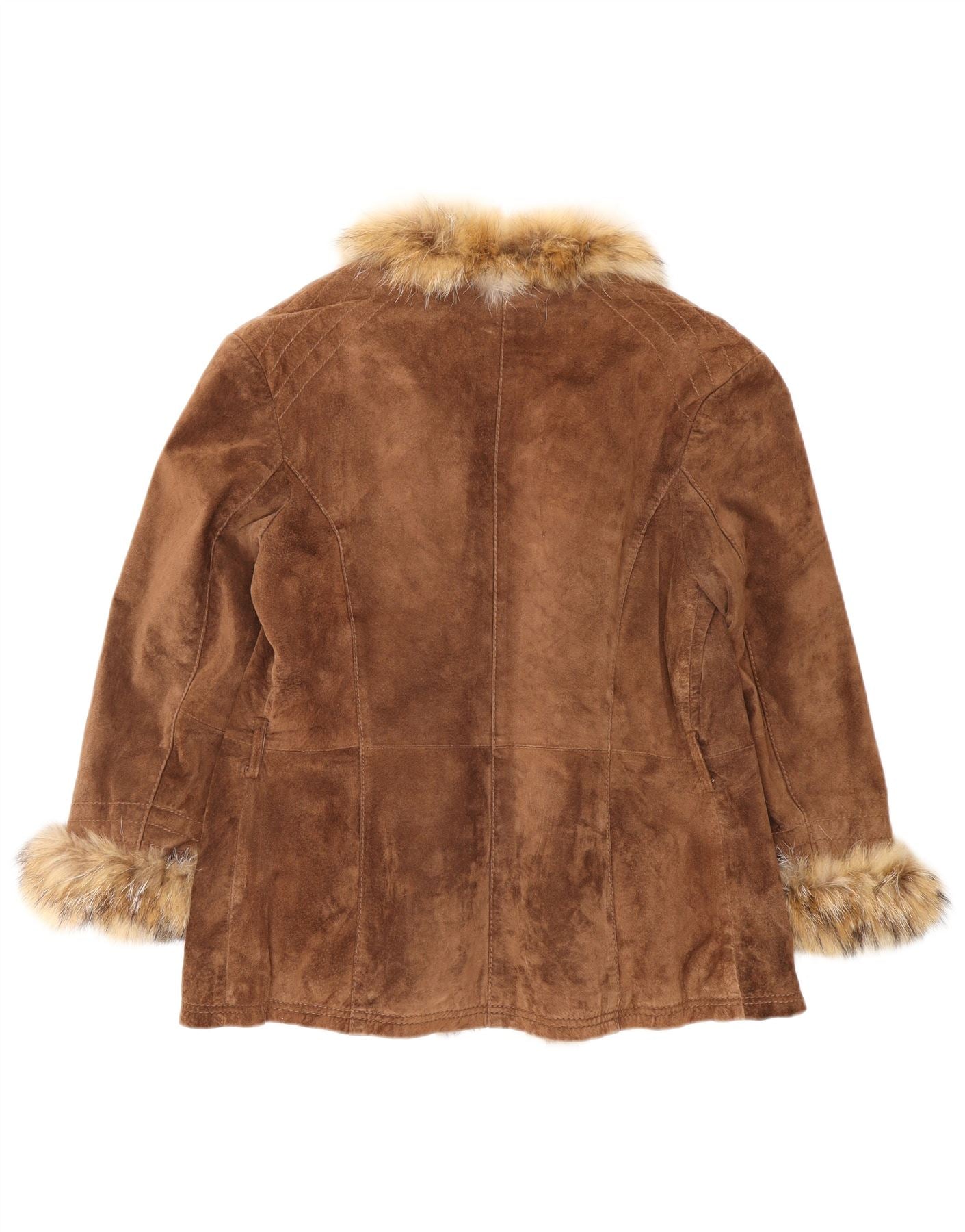 VINTAGE Damen offene Wildlederjacke IT 46 Großes braunes Leder