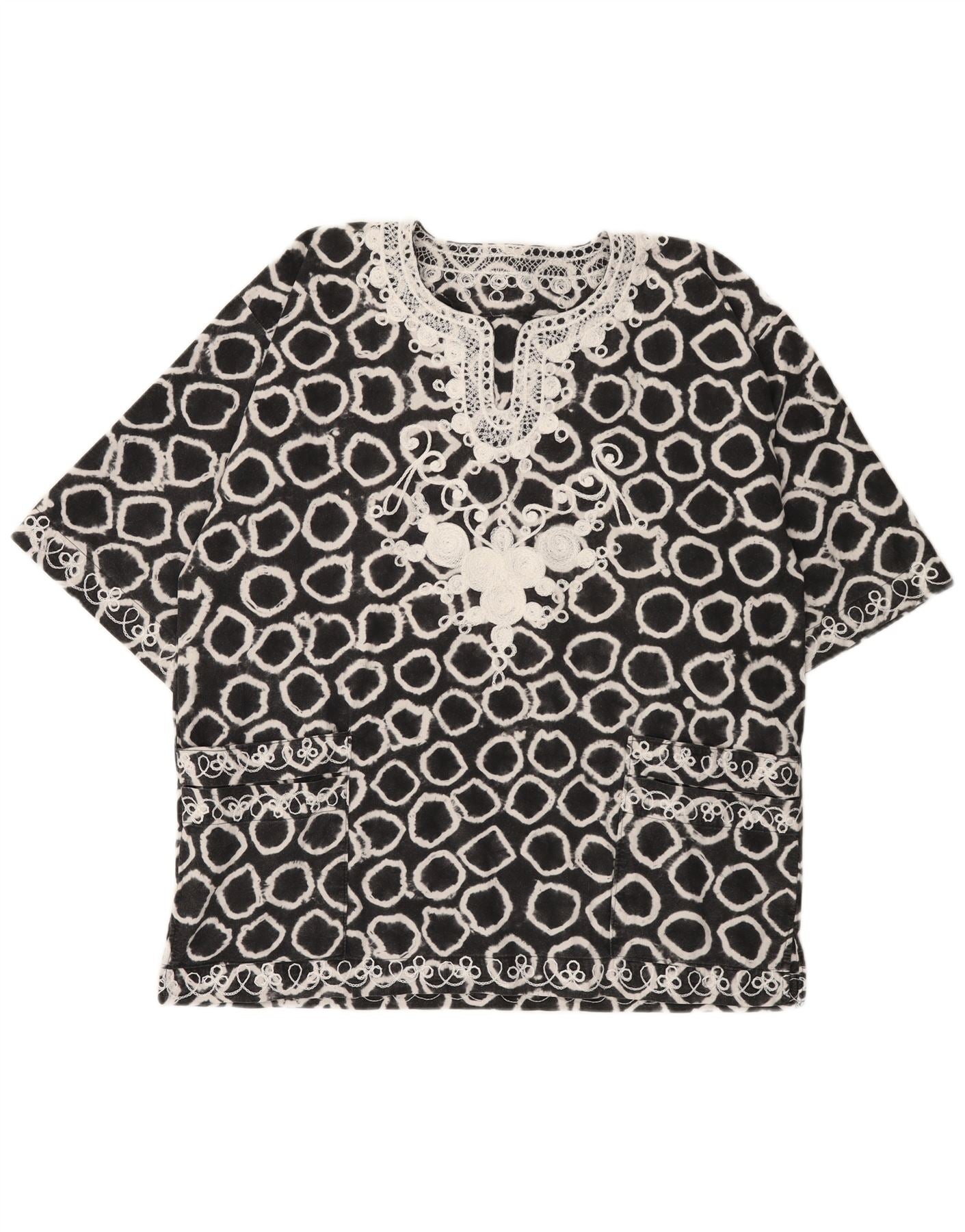 VINTAGE Damen Übergroßes Blusentop mit abstraktem Muster UK 18 XL Schwarz