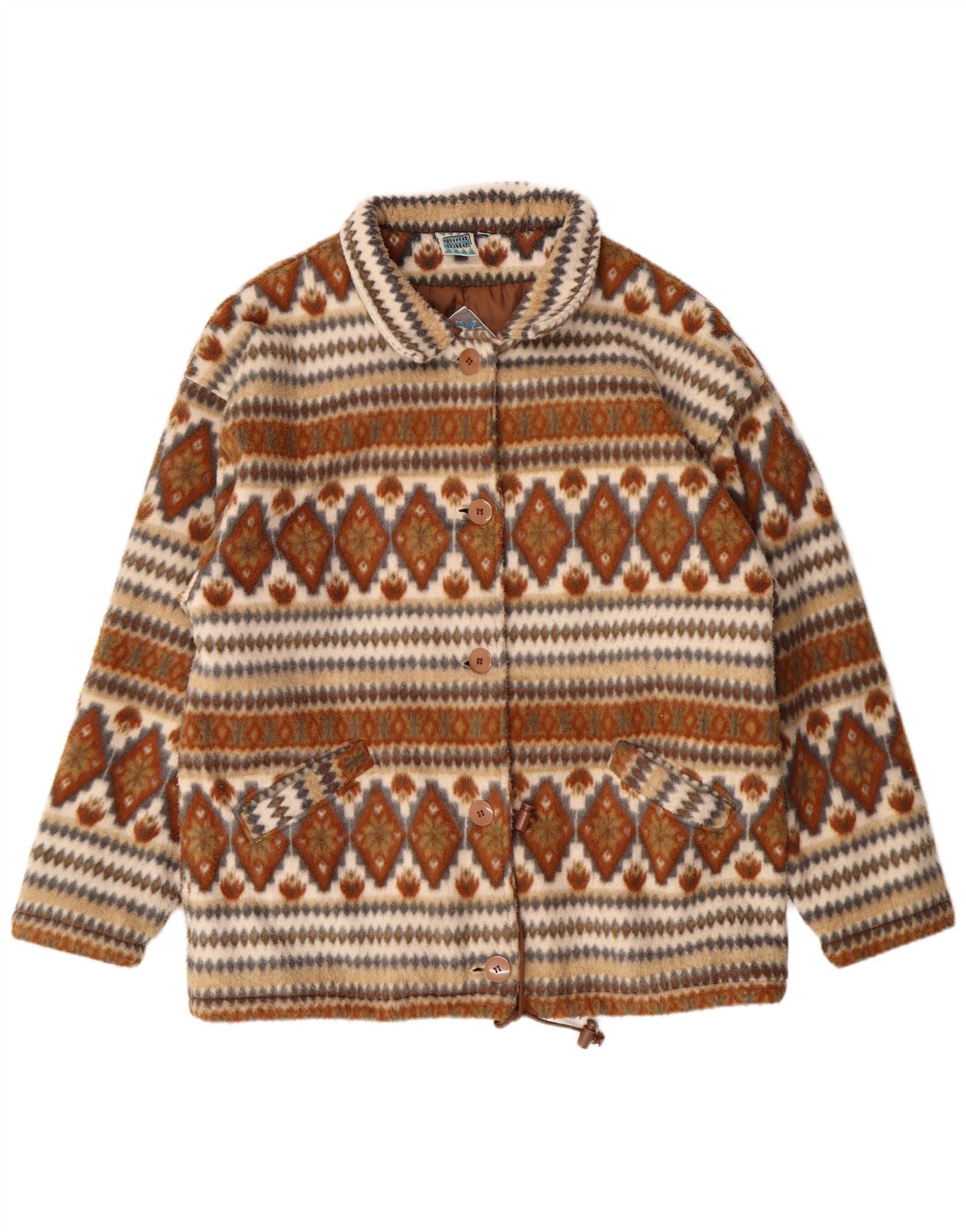 VINTAGE Damen Übergroße Bomberjacke UK 14 Mittelbraun Fair Isle