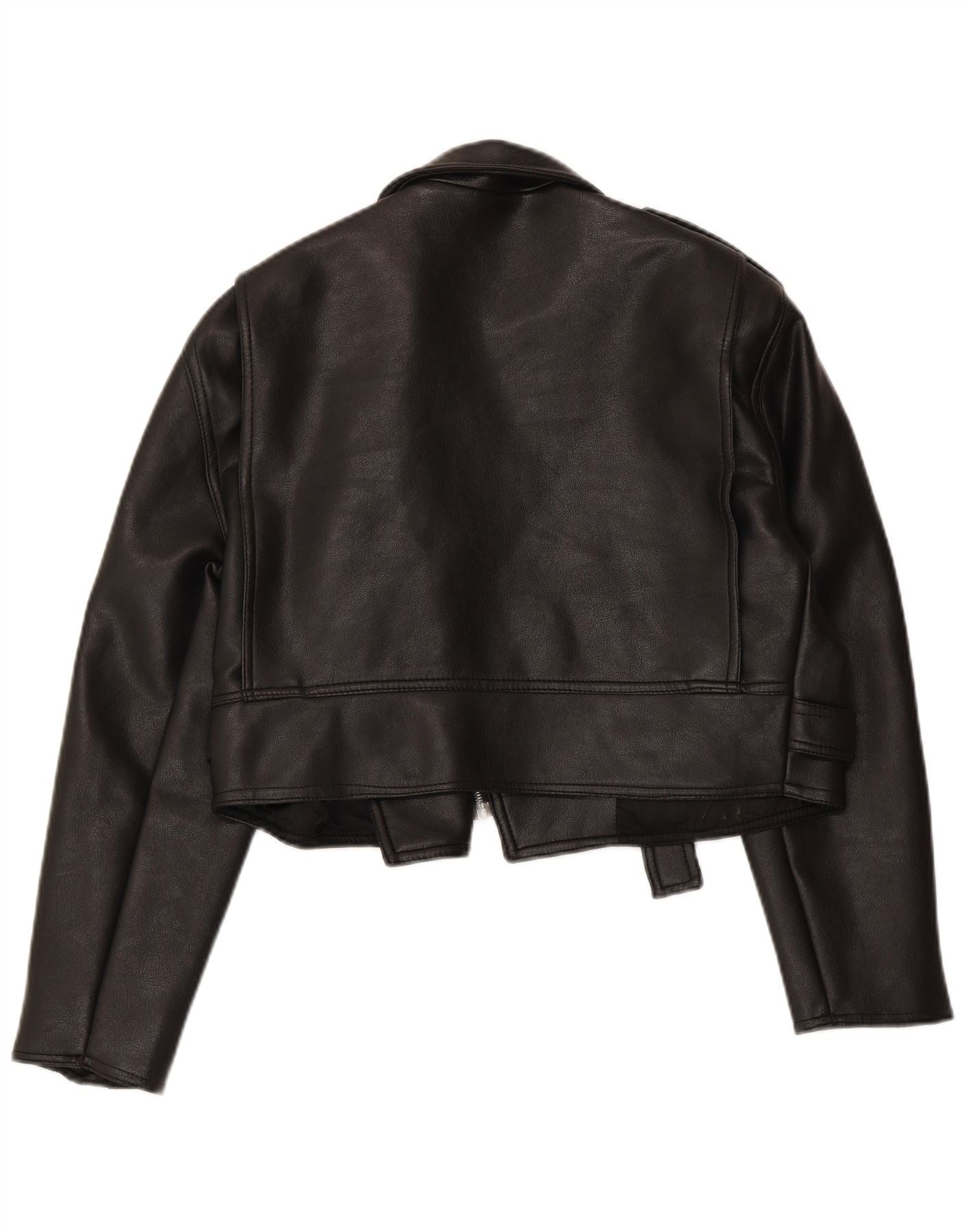 VINTAGE Damen-Bikerjacke aus übergroßem, bauchfreiem Leder, Gr. 10, Größe S, Schwarz