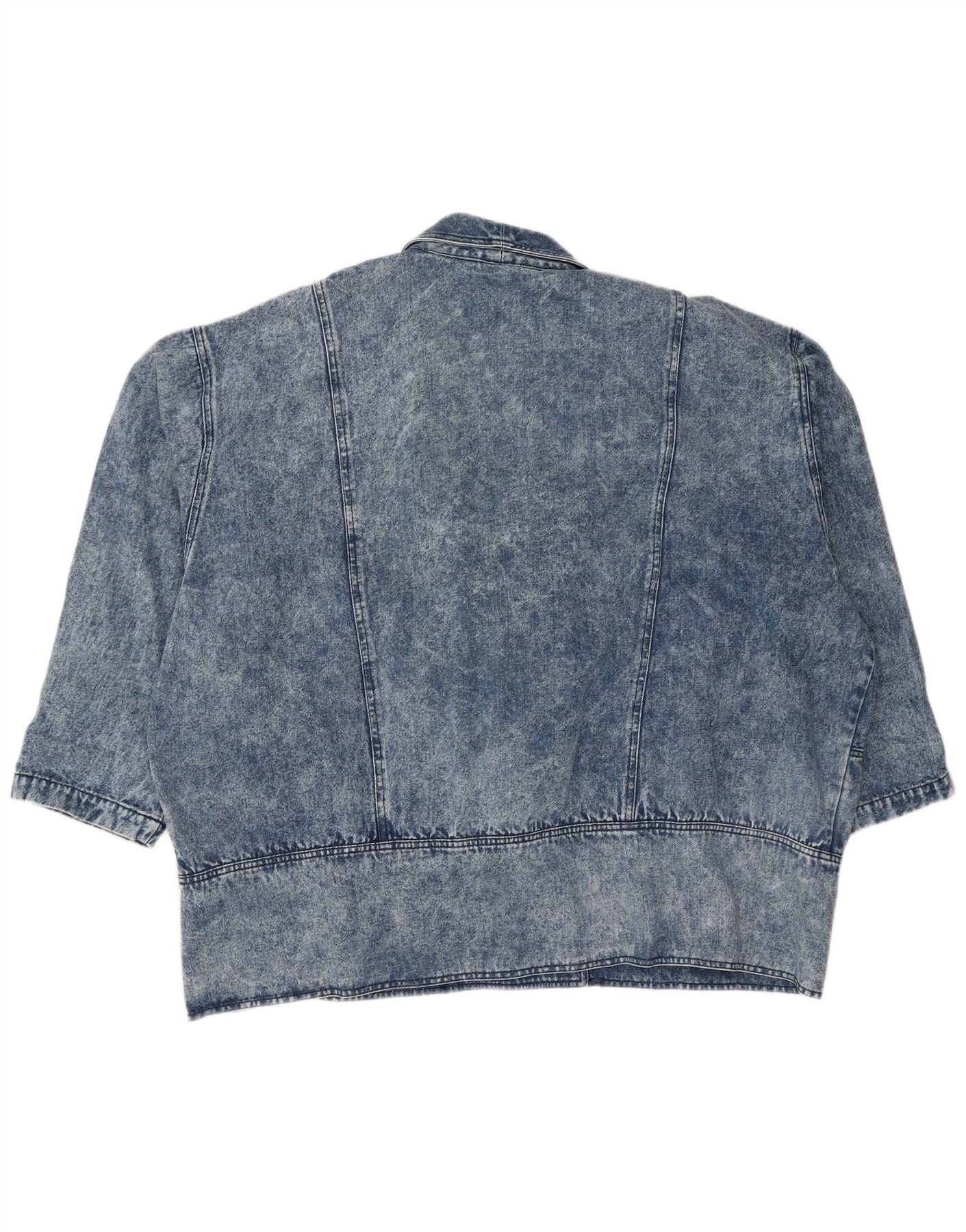 - KI-Beschreibung: Diese Vintage-Jeansjacke für Damen ist aus 100 % Baumwoll-Denim gefertigt. Es verfügt über ein charakteristisches blaues Acid-Wash-Finish, typisch für den Stil der 80er Jahre. Der Kragenausschnitt und die entspannte Passform sorgen für eine bequeme Silhouette. Dreiviertellange Ärmel sorgen für eine einzigartige Note. Druckknopfverschlüsse sichern die Vorderseite, ergänzt durch praktische Vordertaschen. Diese Jacke vereint Retro-Charme mit Alltagstauglichkeit.