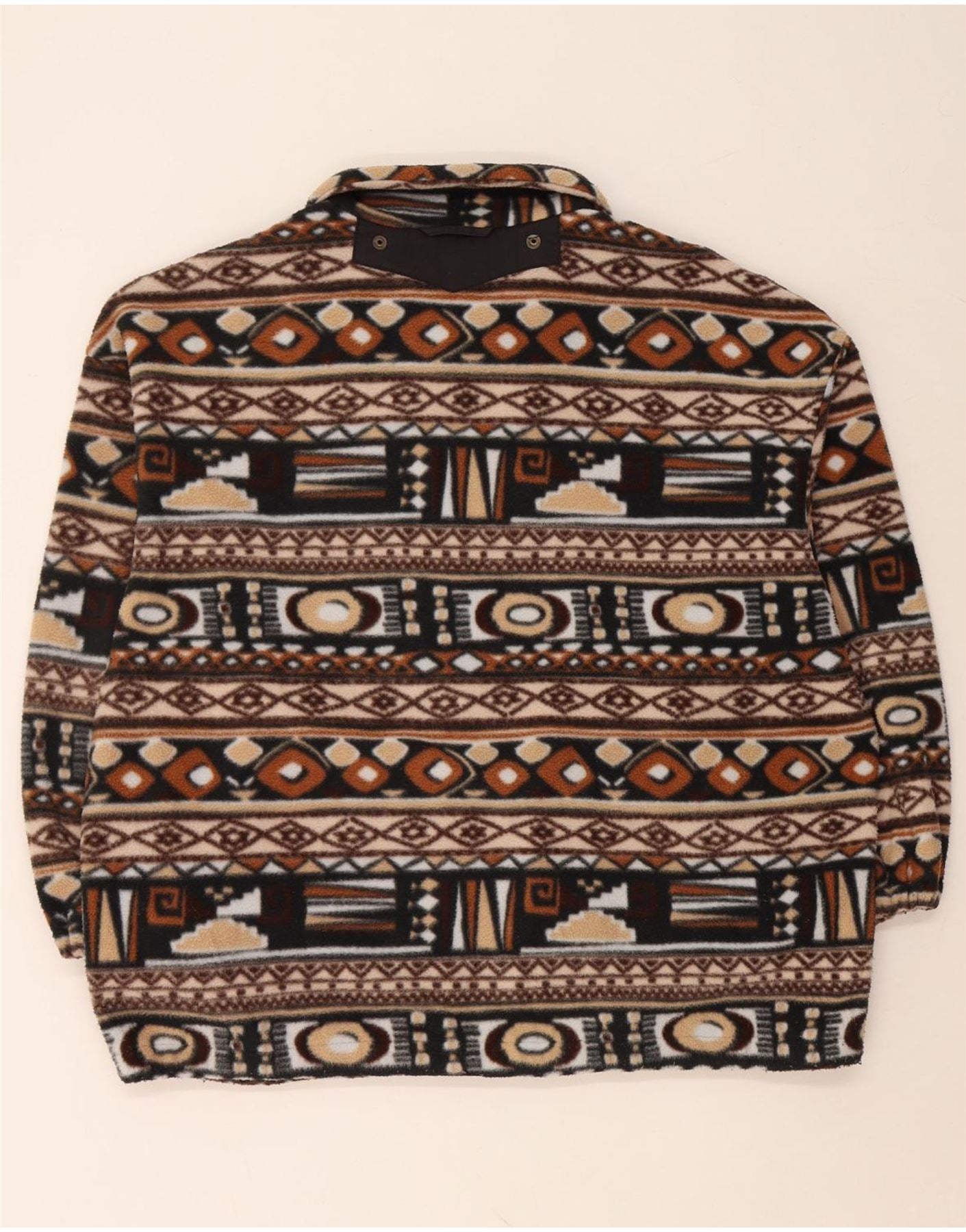 VINTAGE Damen-Oversize-Fleecejacke UK 14 Mittelbraun Fair Isle