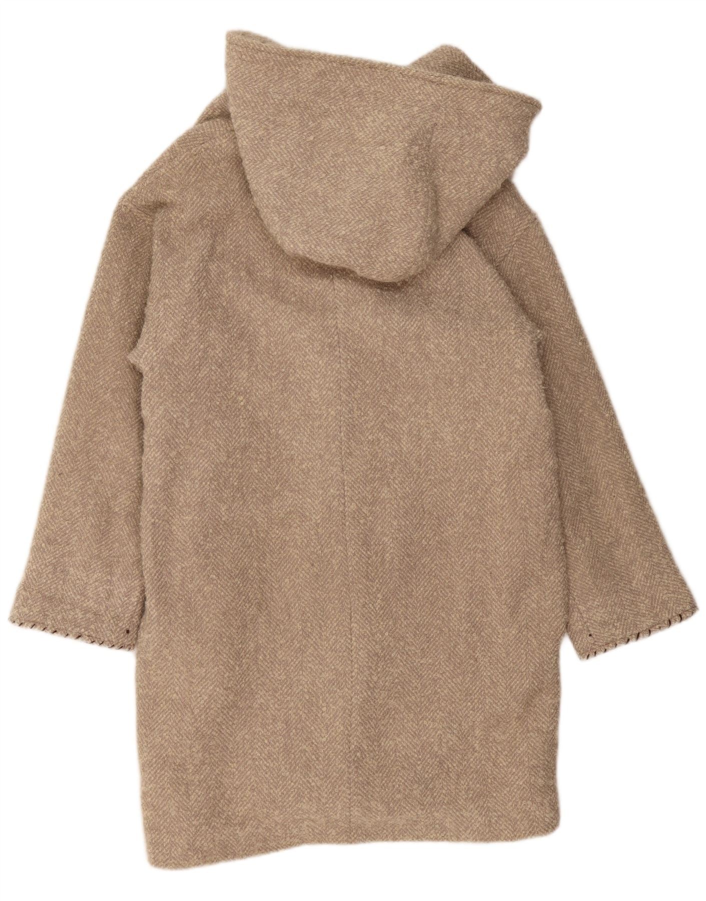 VINTAGE Damen Übergroßer Kapuzenmantel UK 10 Small Beige Herringbone