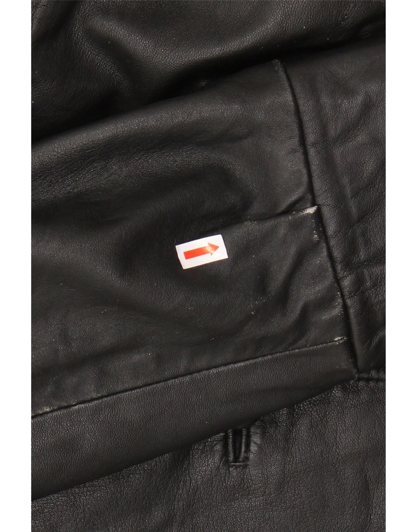VINTAGE Womens Oversized Leather Coat EU 46 XL Black Animal Print Leather