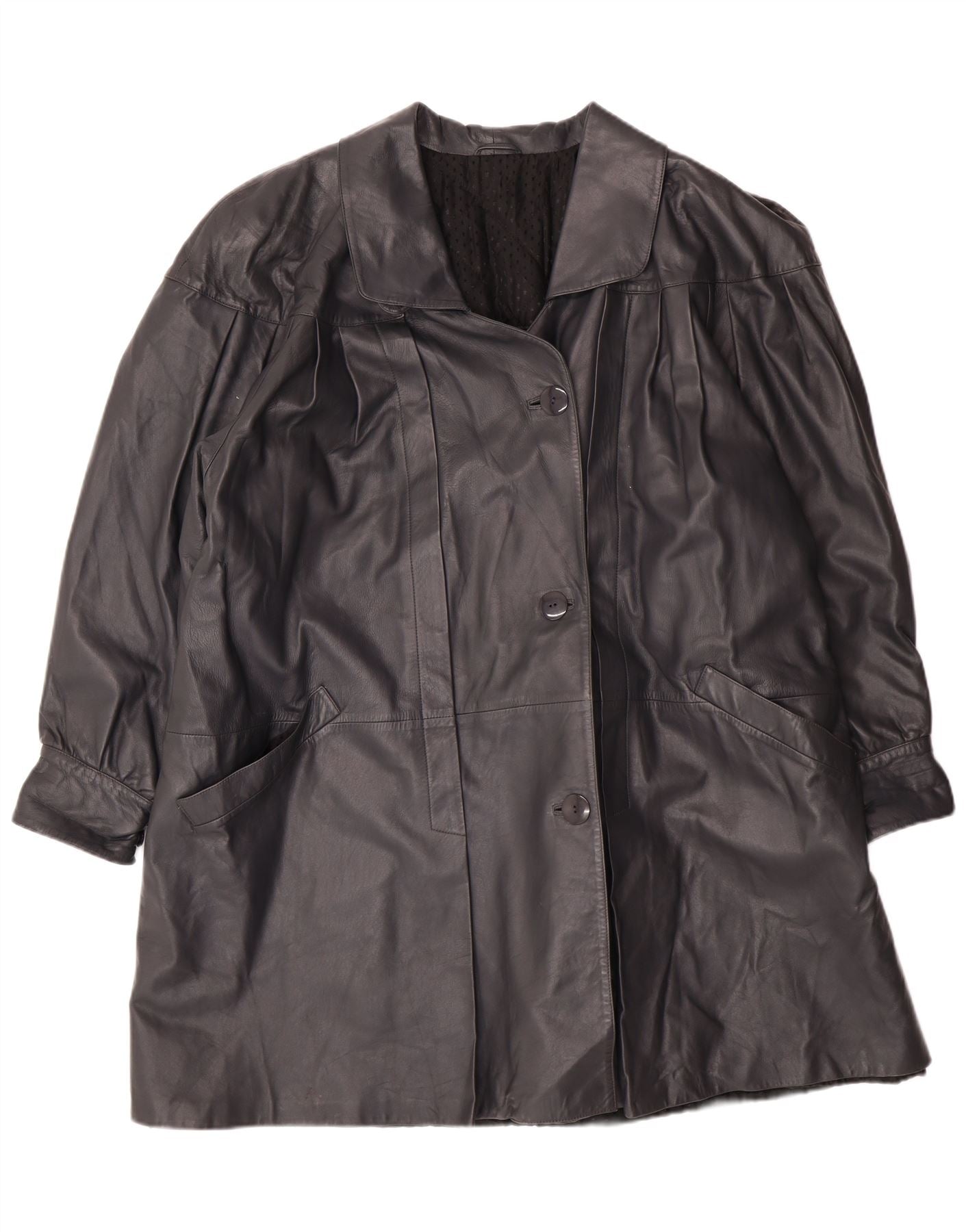 Vintage Damen Übergroßer Ledermantel IT 44 Medium Black Leather Classic