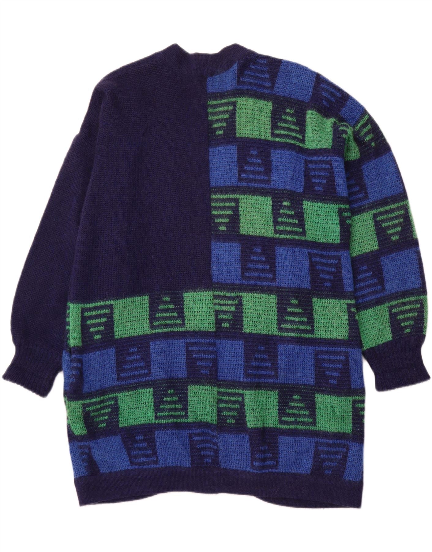 VINTAGE Womens Oversized Longline Cardigan Sweater UK 16 Large Navy Blue