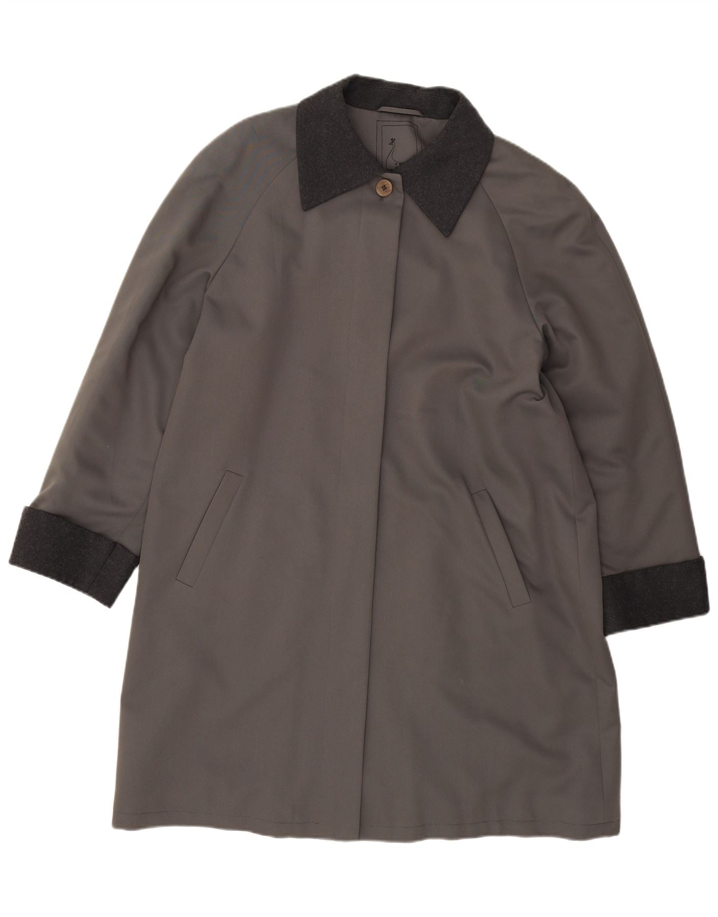 - KI-Beschreibung: Dieser Vintage-Regenmantel für Damen ist aus einem grauen, gewebten Stoff gefertigt und bietet eine wasserdichte Oberfläche. Es verfügt über einen klassischen Kragenausschnitt und lange Ärmel. Die reguläre Passform sorgt für angenehmen Tragekomfort. Ein einzelner Knopfverschluss sorgt für eine saubere Vorderseite. Es verfügt über praktische Taschen und ein durchgehendes Futter. Der dunklere Kragen und die Manschetten sorgen für einen dezenten Kontrast und unterstreichen den klassischen Stil.