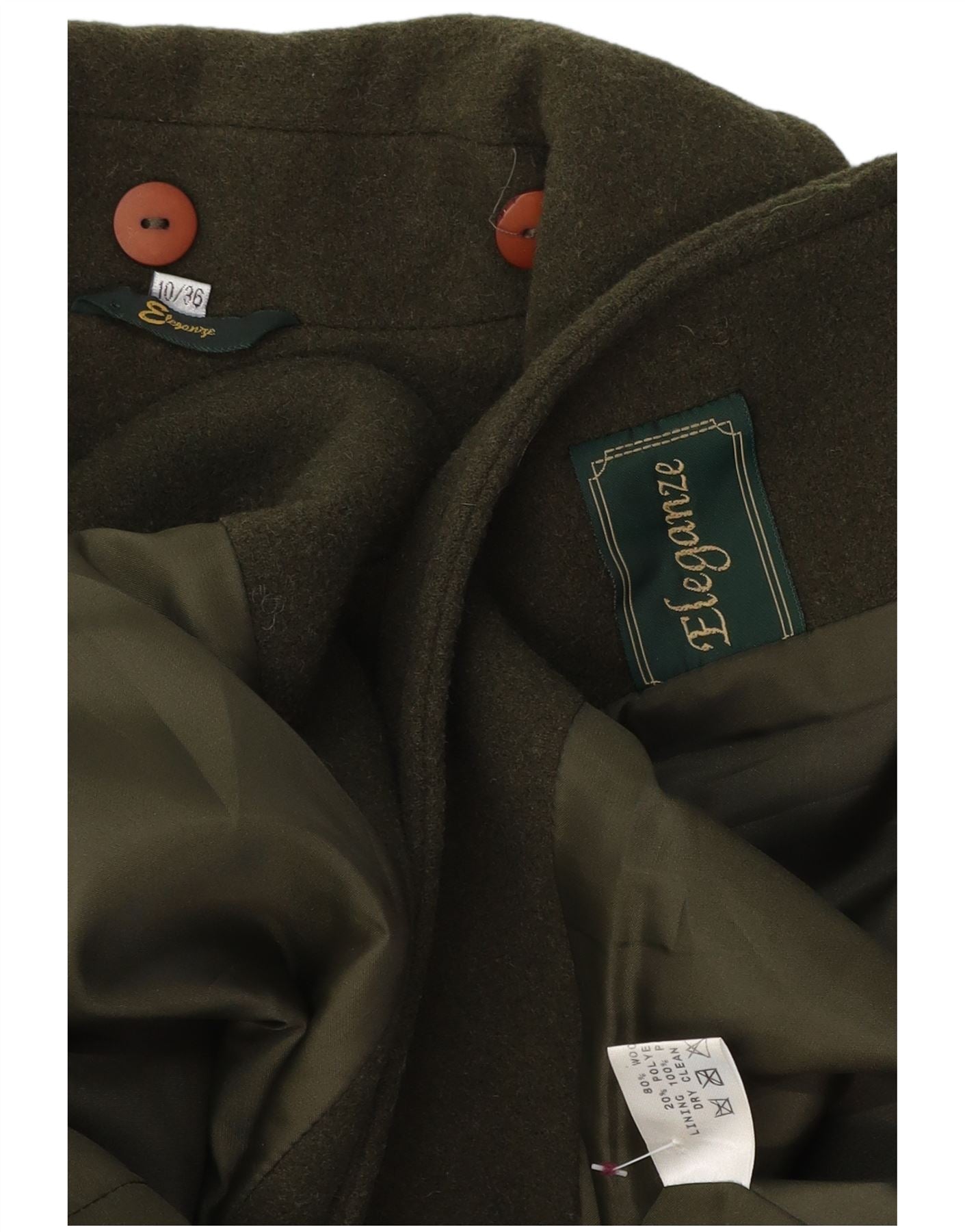 VINTAGE Damen Übergroßer Mantel UK 10 Kleine grüne Wolle