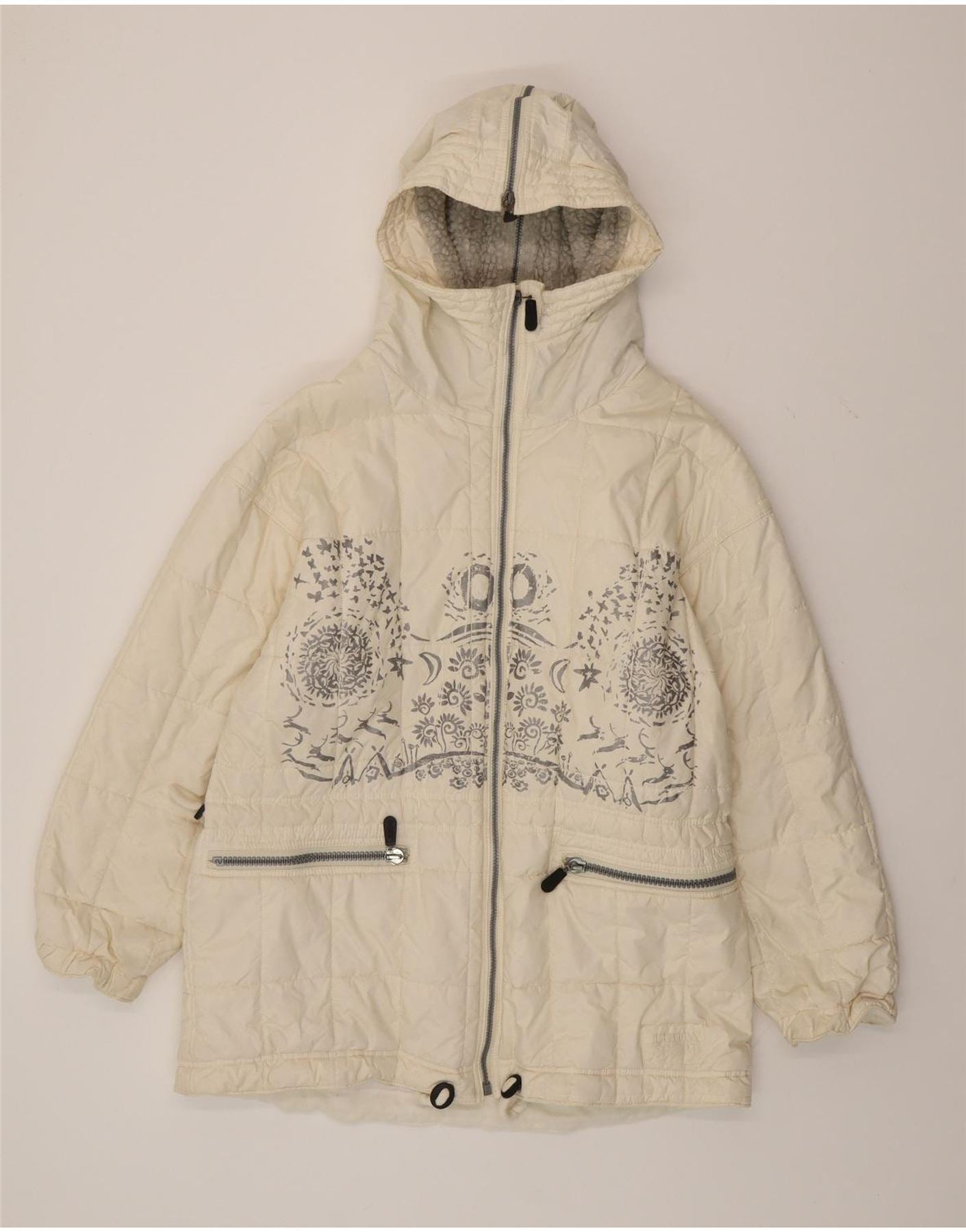 Vintage Damen Übergroßer gepolsterter Mantel UK 10 Kleines weißes Paisley-Polyester