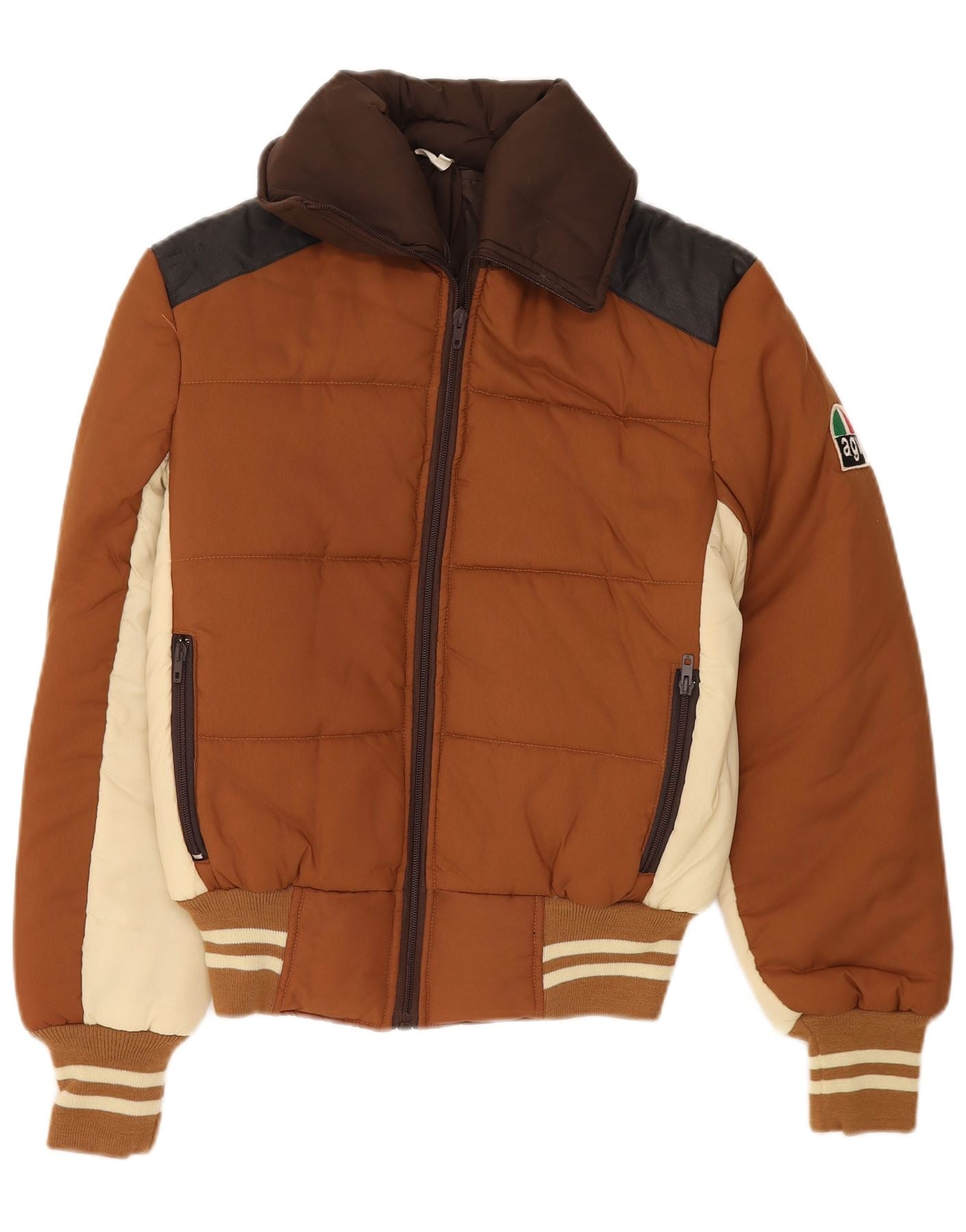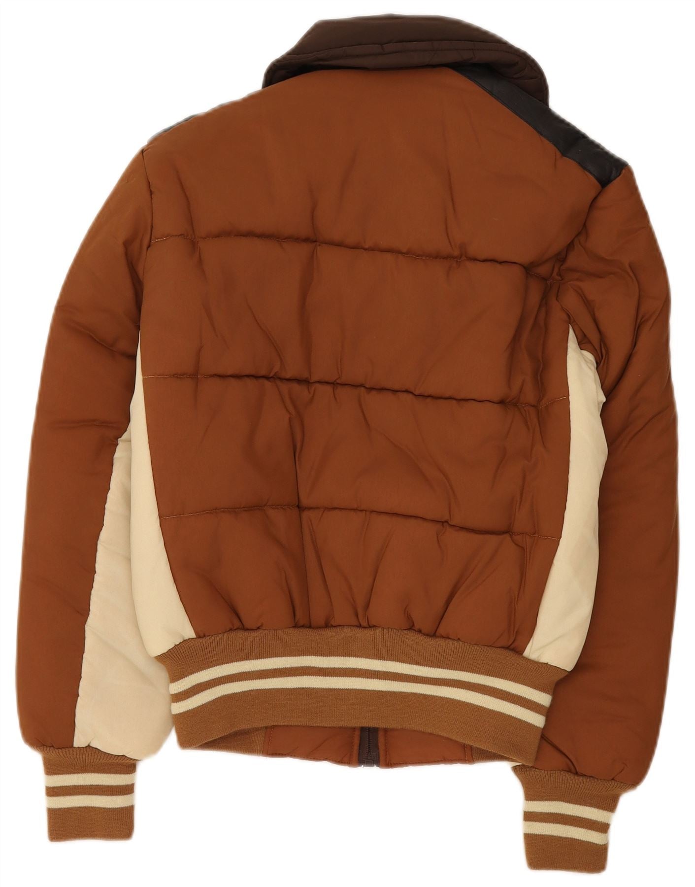 VINTAGE Übergroße gepolsterte Damenjacke UK 10 Small Brown Colourblock