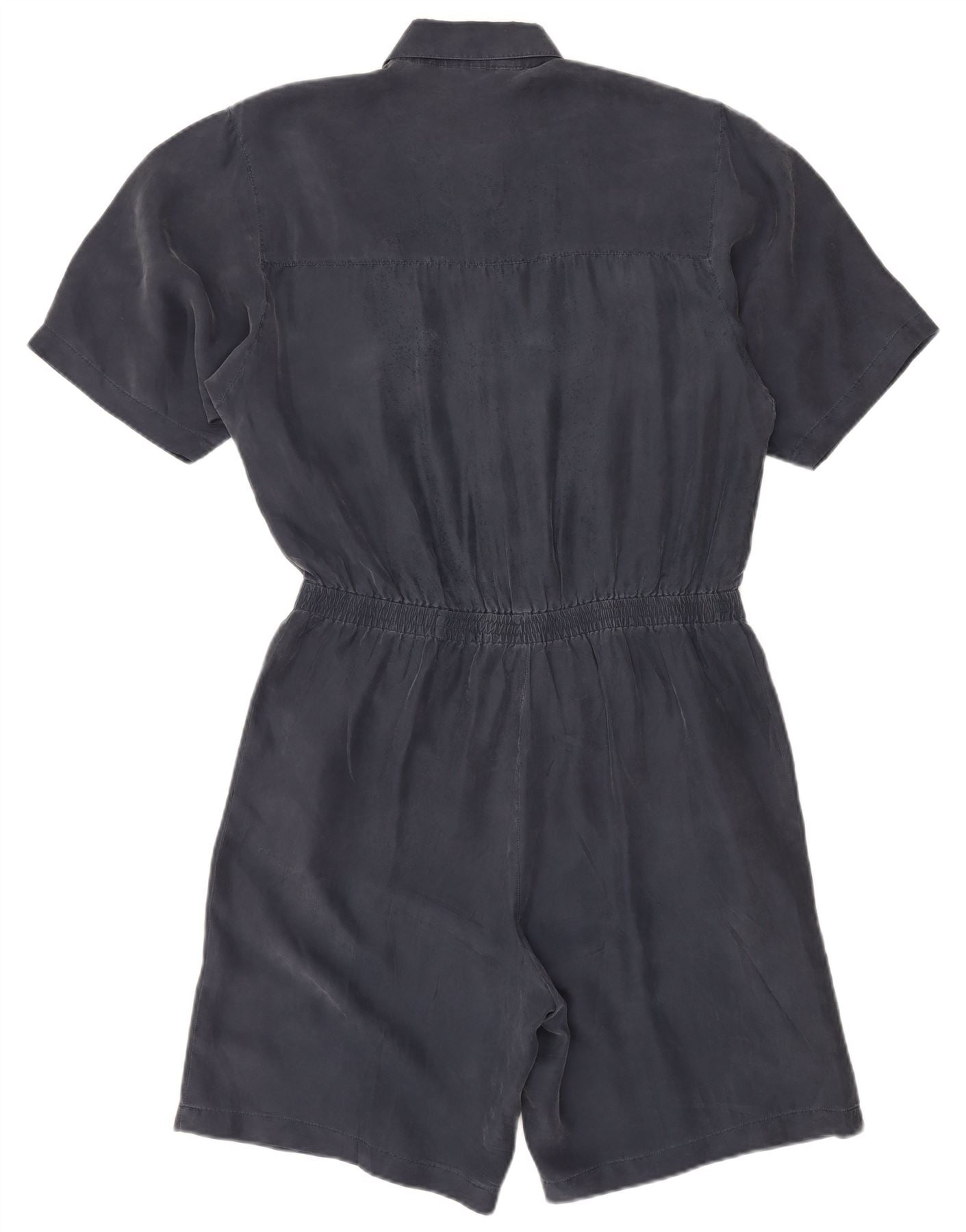 VINTAGE Damen Playsuit UK 14 Medium Marineblaue Seide