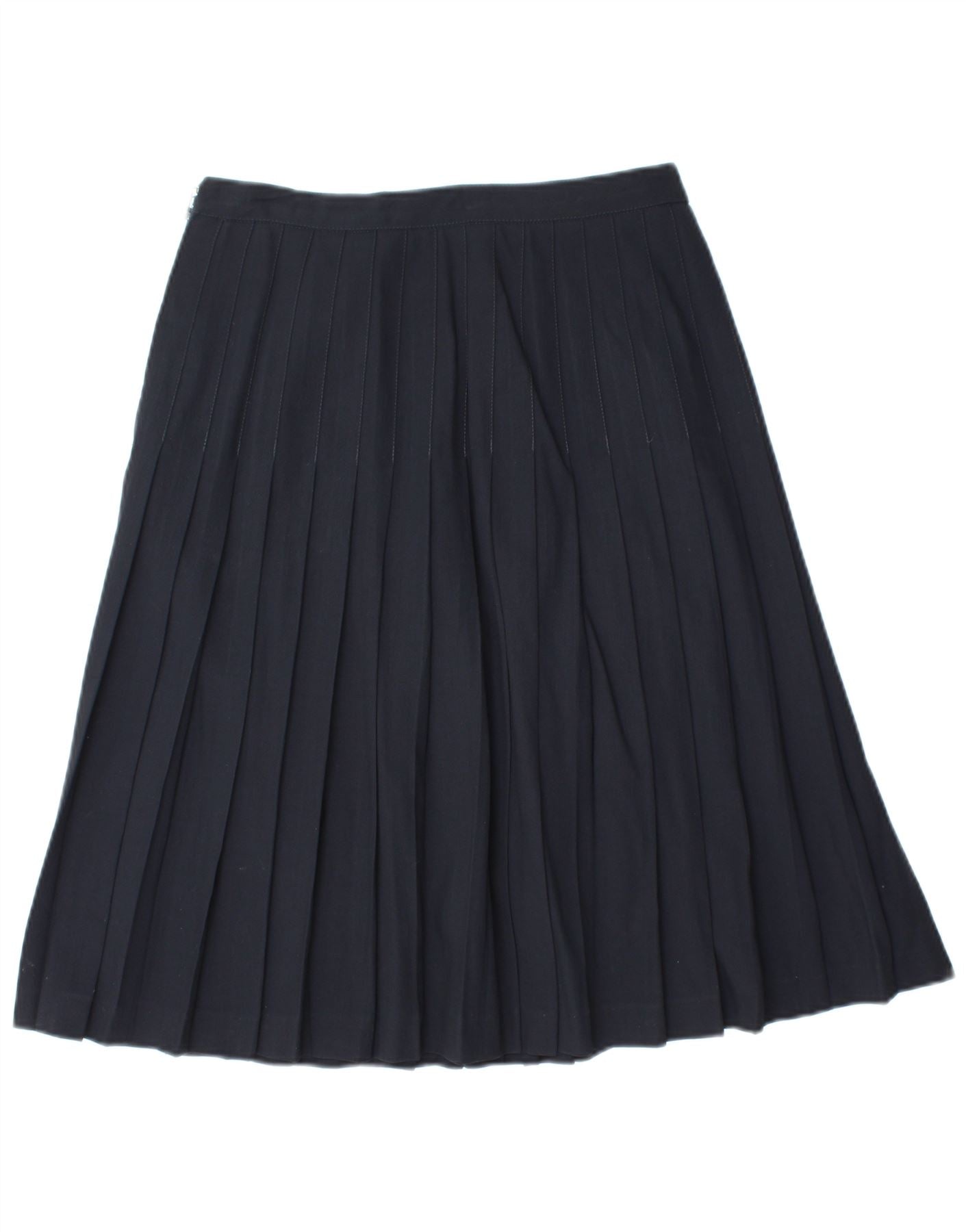 VINTAGE Damen Faltenrock IT 44 Medium W28 Marineblaue Schurwolle