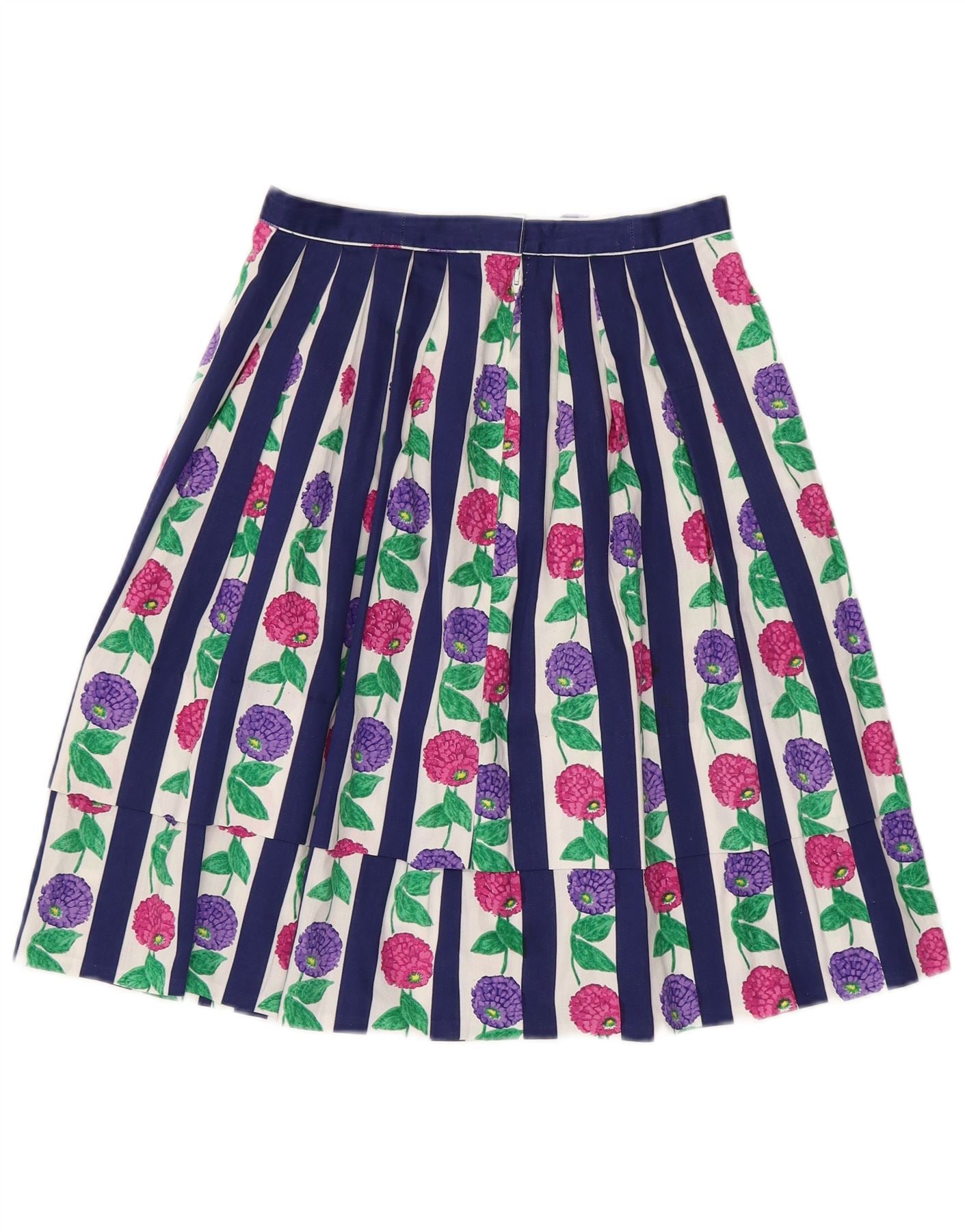 VINTAGE Damen Faltenrock W24 XS Blau geblümt