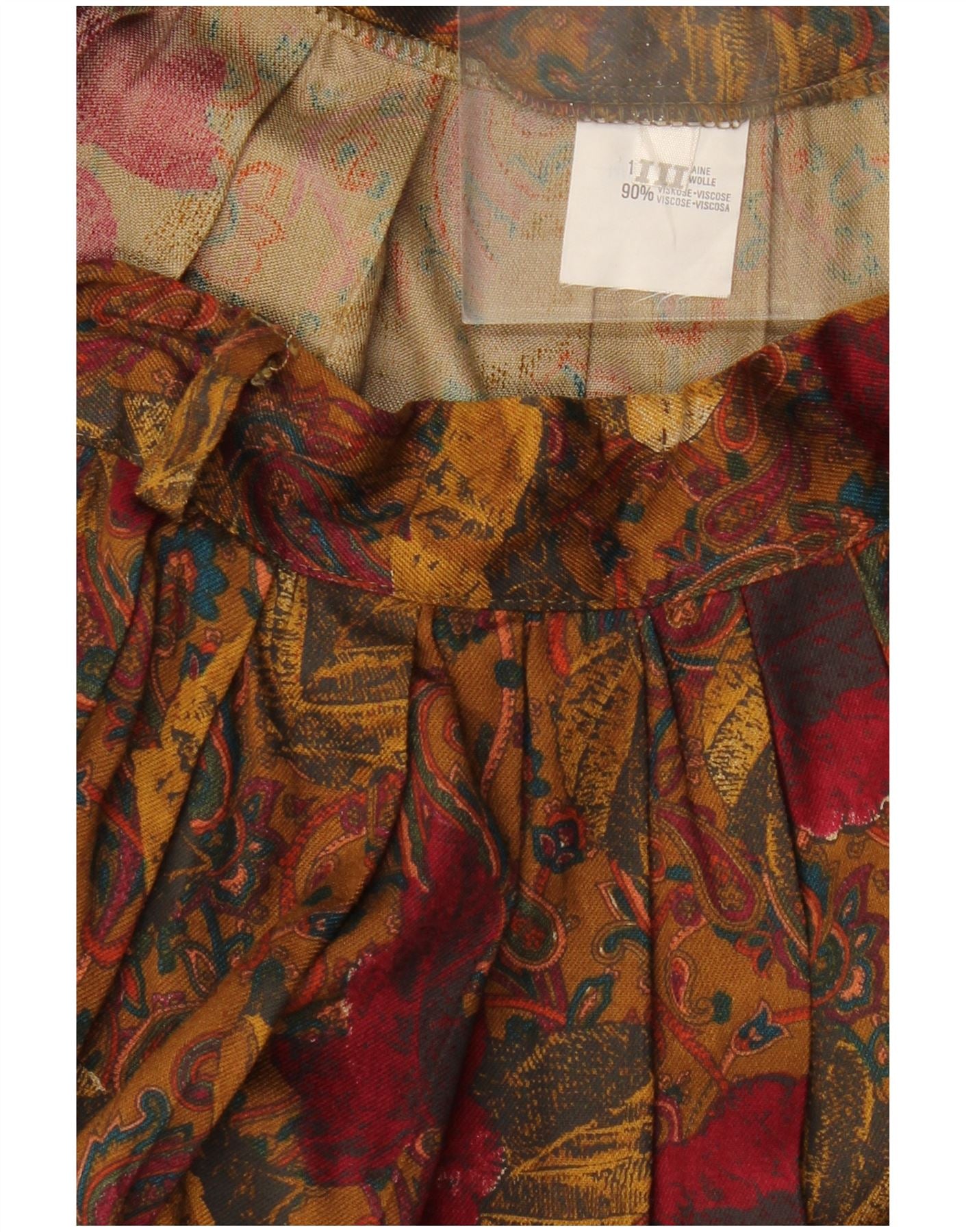 VINTAGE Damen Faltenrock W30 Mittelbraune Paisley-Viskose