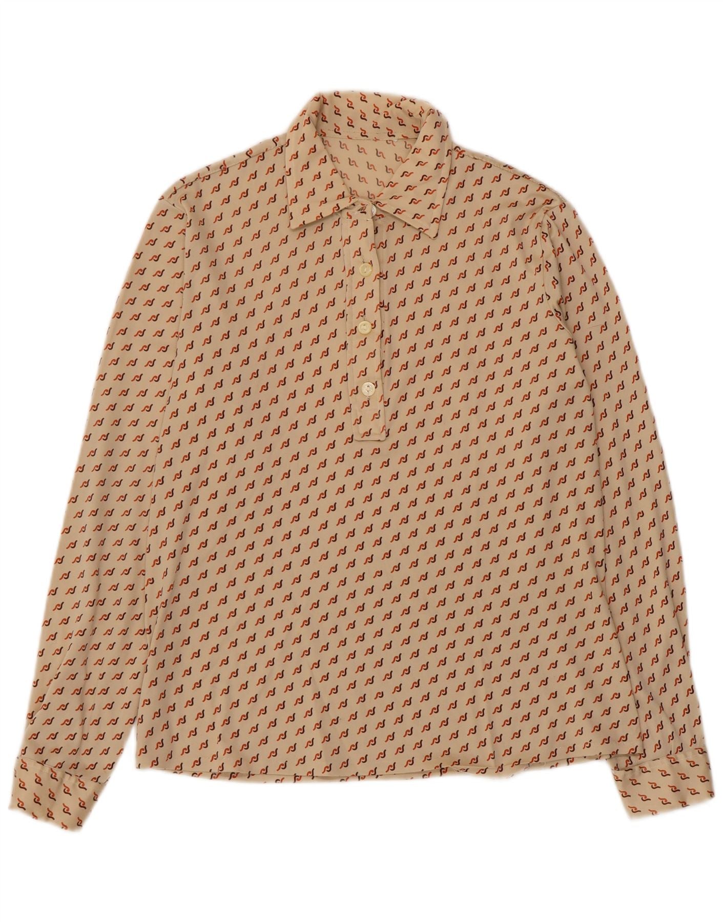 VINTAGE Damen Pullover Shirt UK 16 Large Beige Geometrisch