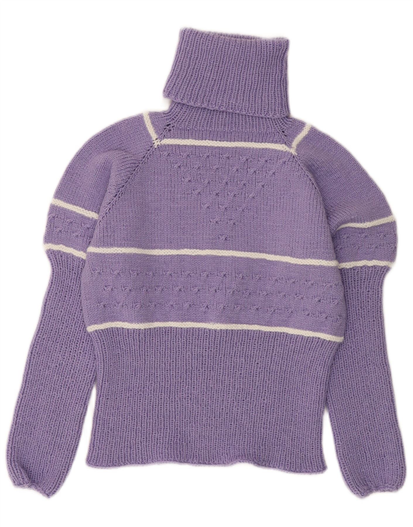 VINTAGE Damen Rollkragenpullover Pullover UK 10 Klein Lila gestreift