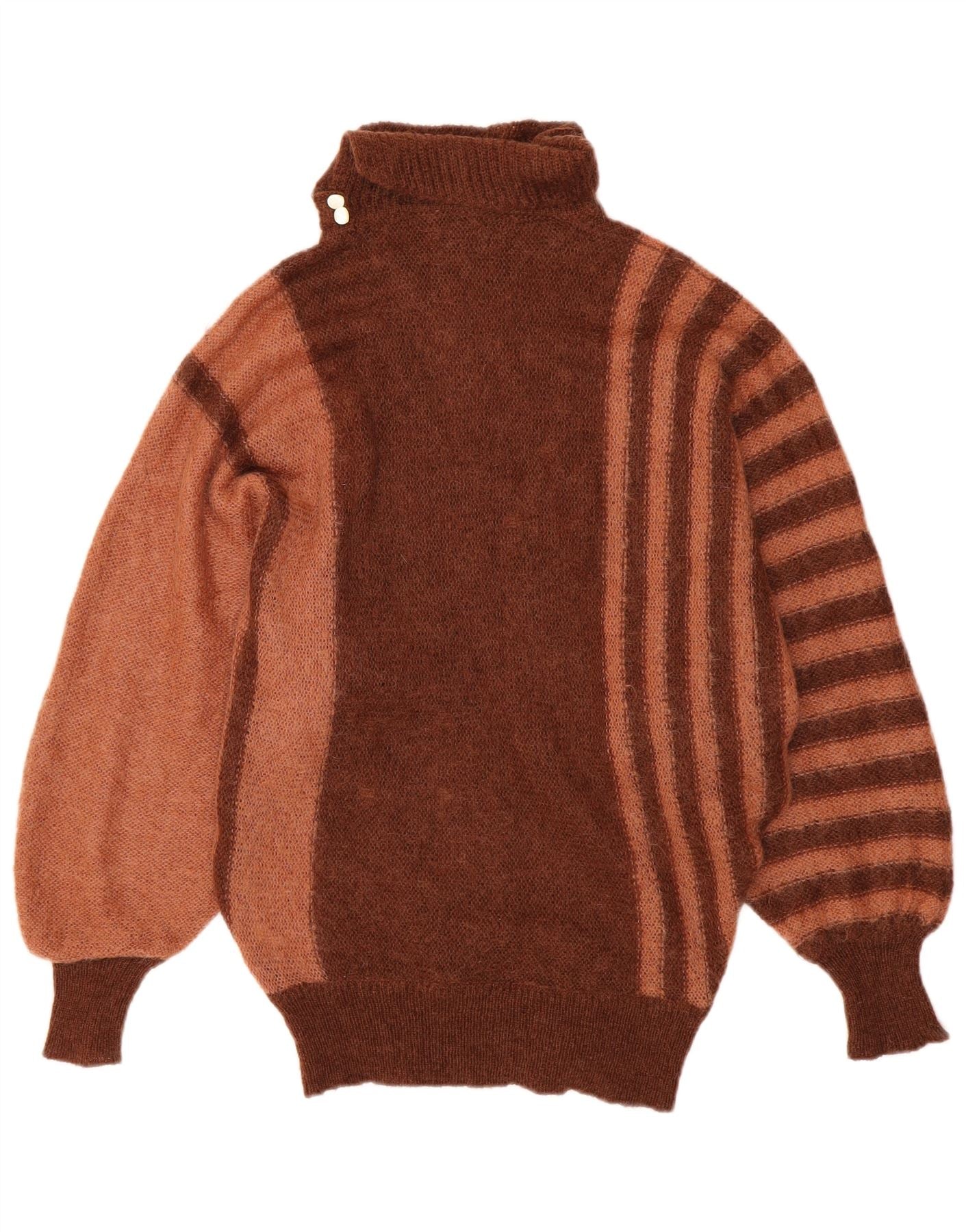 VINTAGE Rollkragenpullover für Damen, Gr. 14, groß, braun gestreift, Mohair