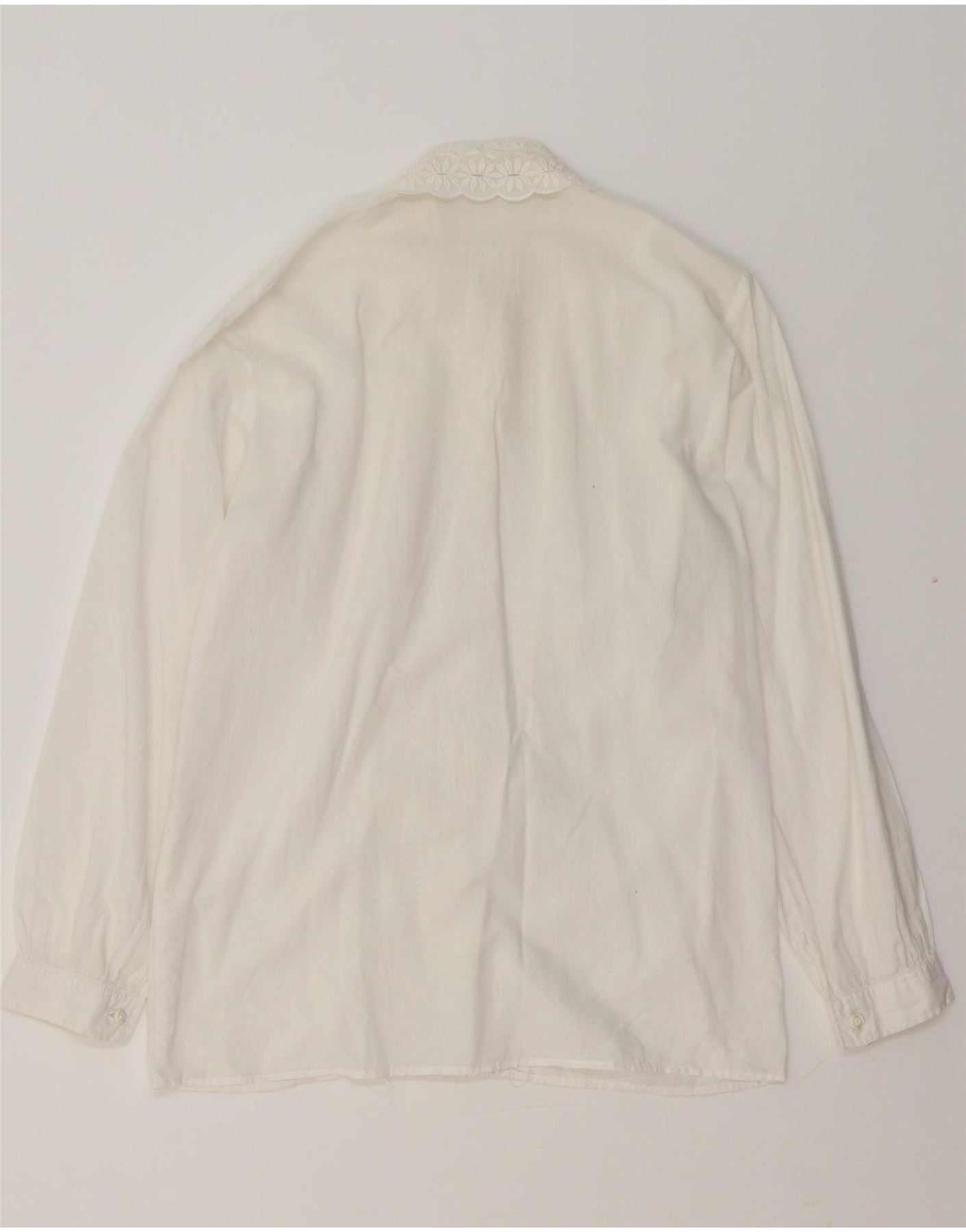 VINTAGE Damen-Hemdbluse mit Rüschen vorne, UK 14, mittelweiß, geblümt