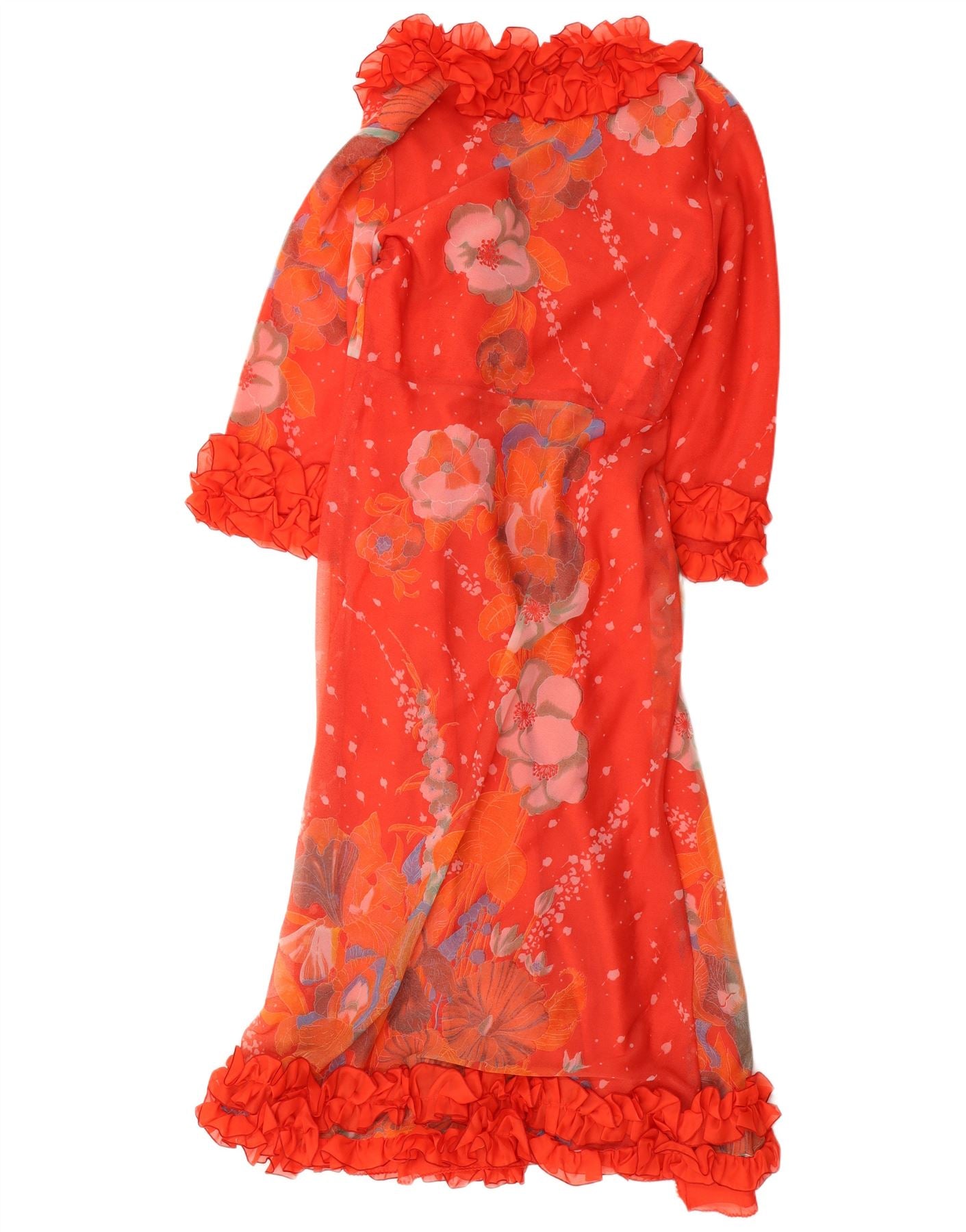 VINTAGE Maxikleid mit Rüschen für Damen, UK 12, mittelrot, geblümt