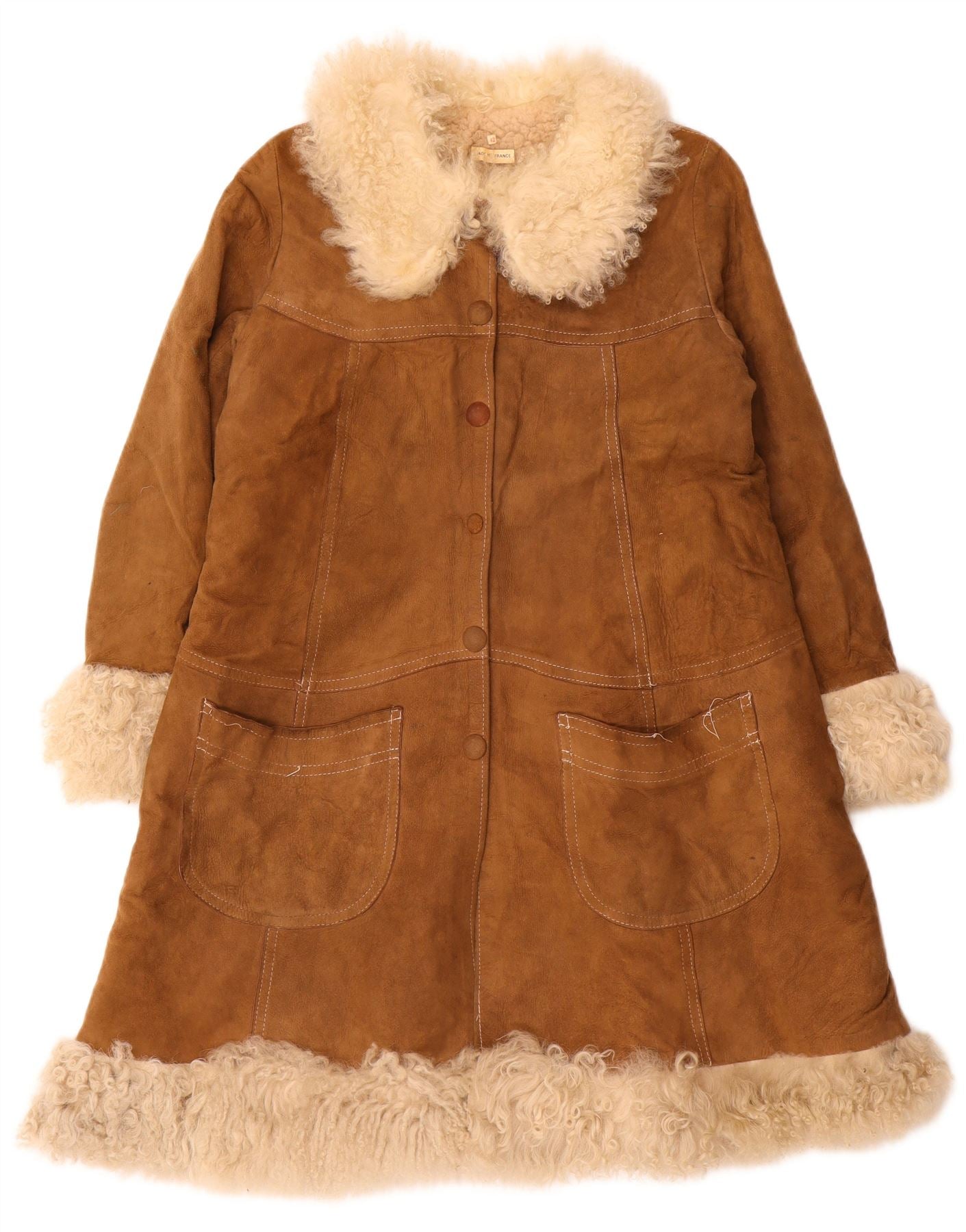 VINTAGE Damen Lammfellmantel EU 42 Groß Braun
