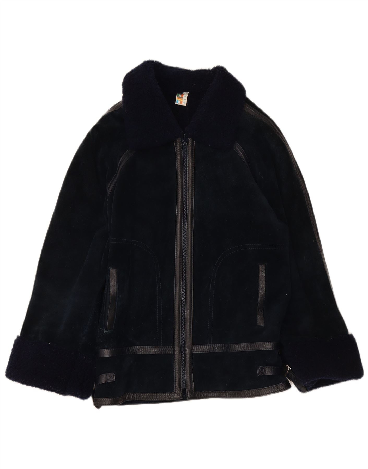 VINTAGE Damen-Lammfelljacke IT 44 Mittelmarineblaues Leder