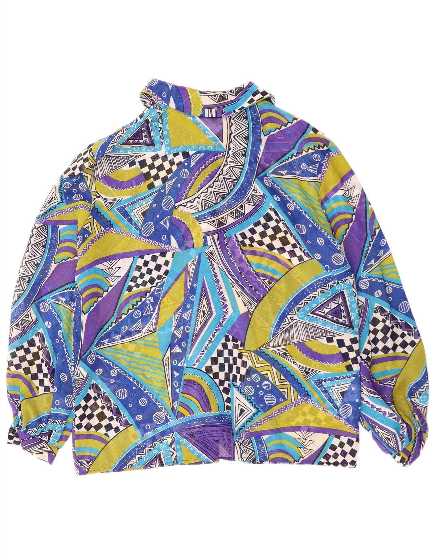 VINTAGE Damen Hemdbluse IT 42 Mittelblaues geometrisches Polyester