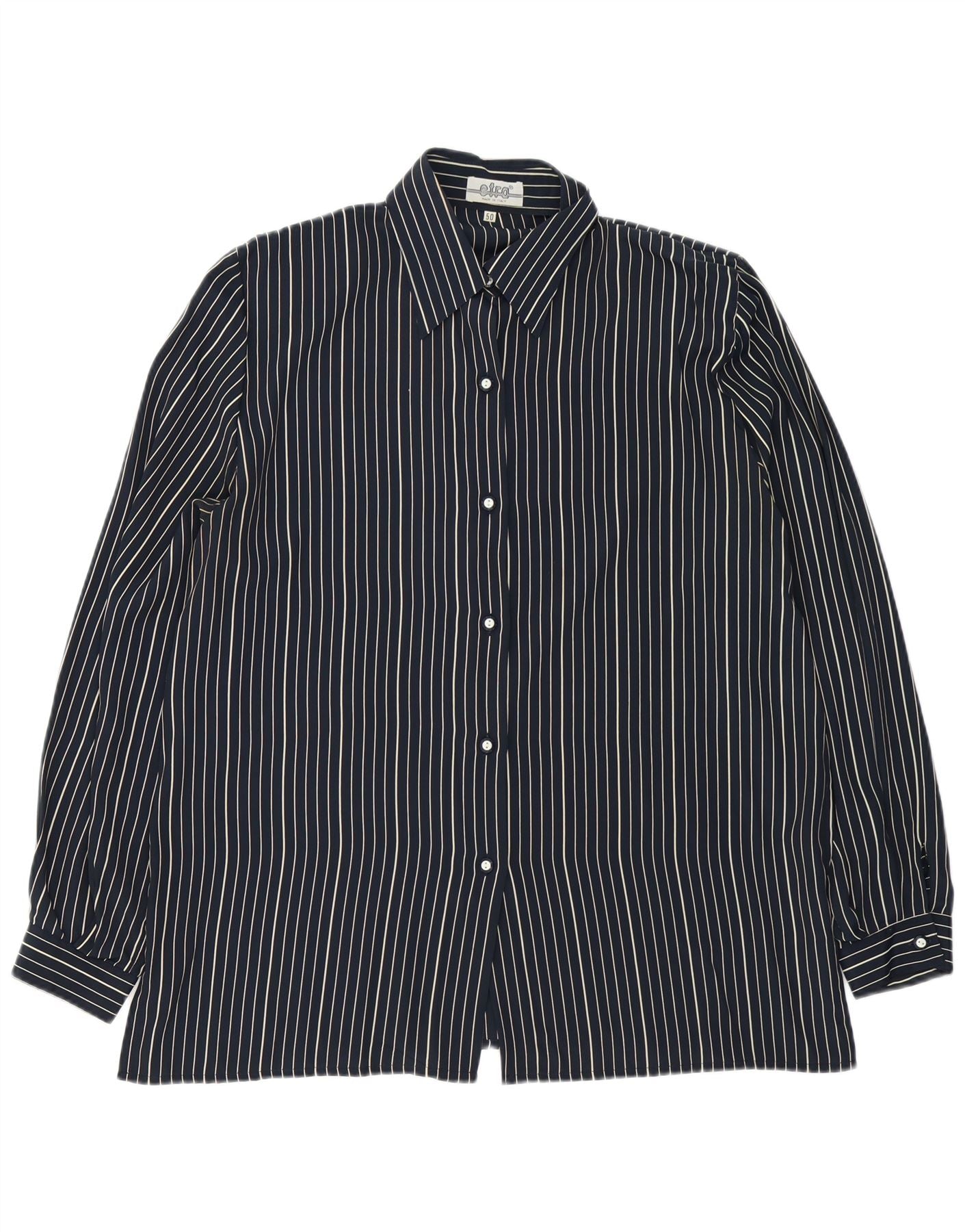 VINTAGE Damen Hemdbluse IT 50 XL Marineblaue Nadelstreifenseide