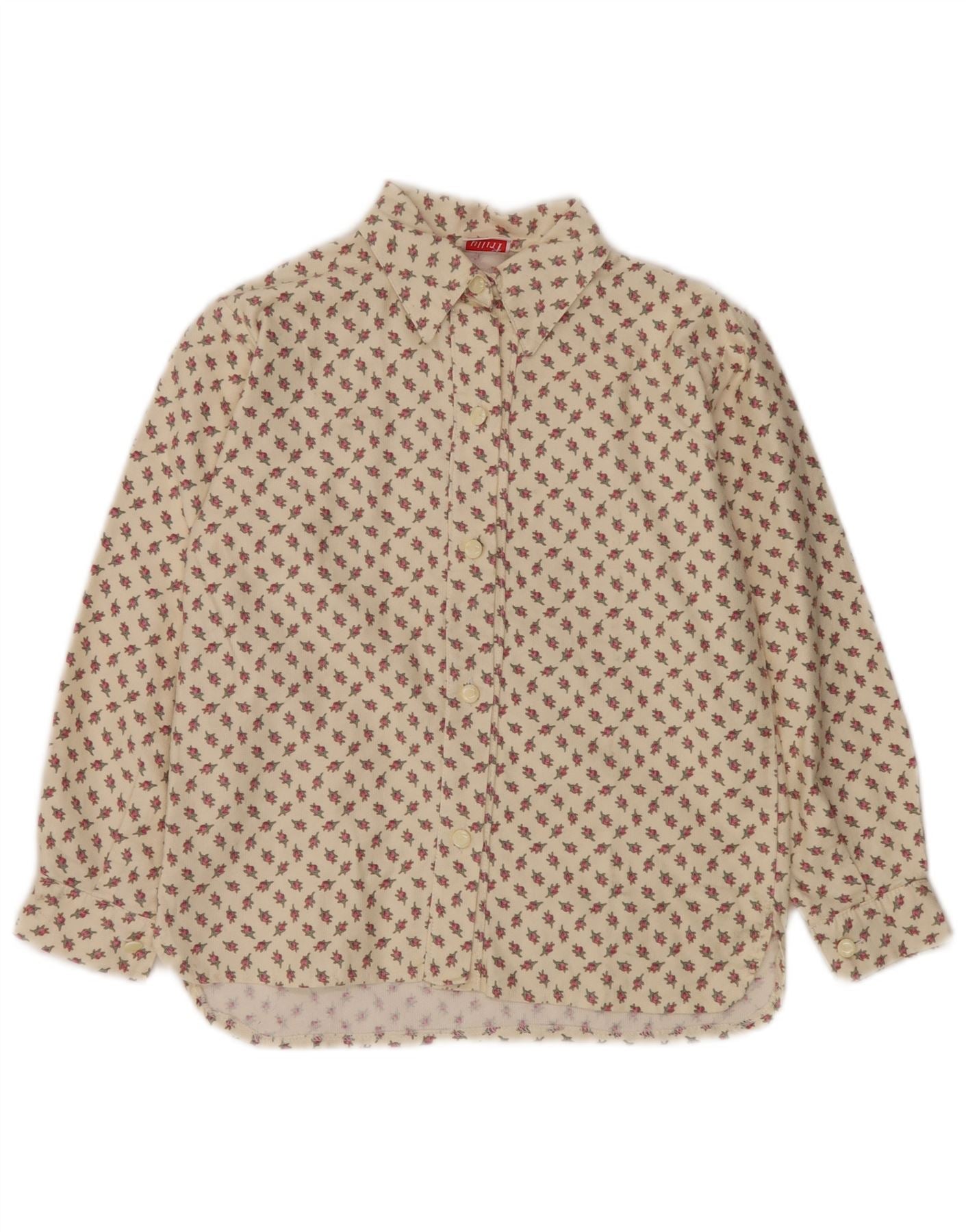 VINTAGE Damen Hemdbluse UK 10 Small Beige Floral Cotton